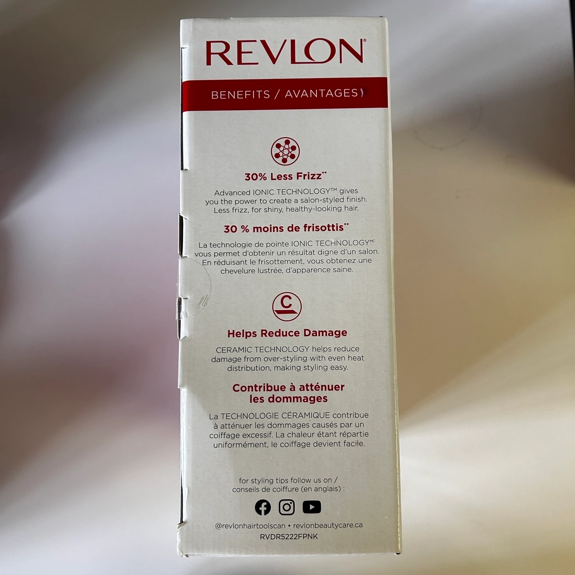 Got as gift and used only once. Selling because I rarely style my hair. Pick up only. The Revlon Salon One-Step Ceramic Ionic Hot Air Dryer Round Hair Brush & Volumizer helps dry and style hair quickly and easily, reducing frizz and damage. The oval brush design with mixed nylon and boar bristles smooths the hair while lifting roots for natural volume and gently curls ends. The ionic technology reduces water droplets for speedy drying that conditions and boosts shine, and the ceramic coating ensures even heat distribution. The two heat and speed settings with ergonomic handle and cool tip allow for tailored styling so you can get smooth, shiny results with less arm fatigue. Item Description: https://www.canadiantire.ca/en/pdp/revlon-salon-one-step-ceramic-ionic-hot-air-dryer-round-hair-brush-volumizer-black-2-8-in-0438425p.html?gbraid=0AAAAADojZpgx2ihCJtRIsTyxE4f5UJzmS&gclid=EAIaIQobChMIxszM-v7dhwMVwTUIBR2gnR--EAQYCCABEgIfXfD_BwE&gclsrc=aw.ds#store=264