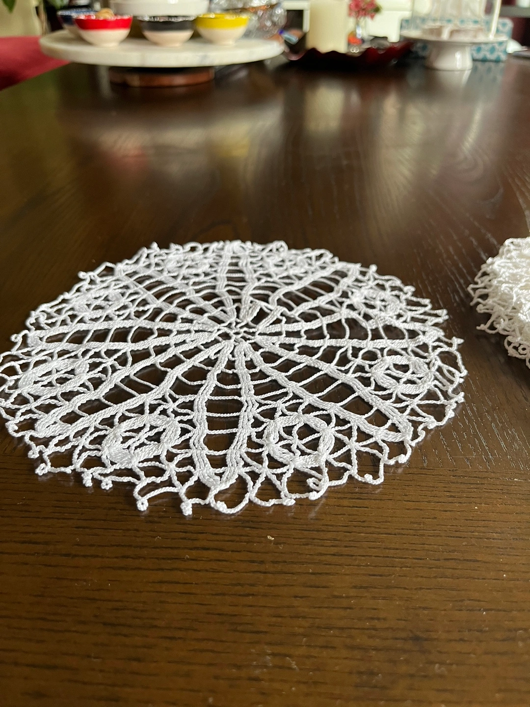 White handmade crochet doilies for sale. - Size: 23 cm - Quantity: 14 identical pieces - Price: $15 each
