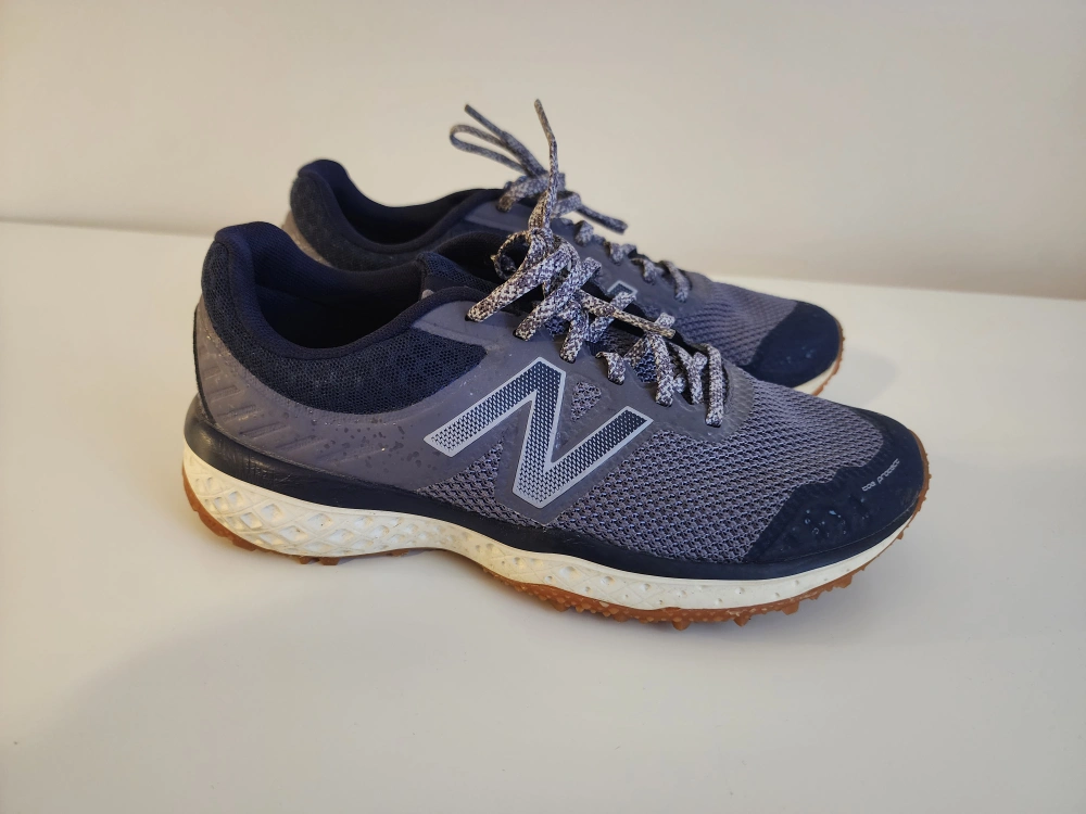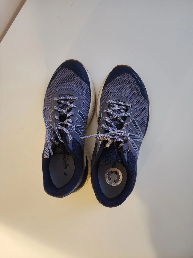 New Balance women's running shoes, size 7 US. Grey and navy blue. Lace-up. super comfortable and great grip. I have so many running shoes because I play volleyball so I am getting rid of some of them. purchased this for $60 plus tax and reselling for $20