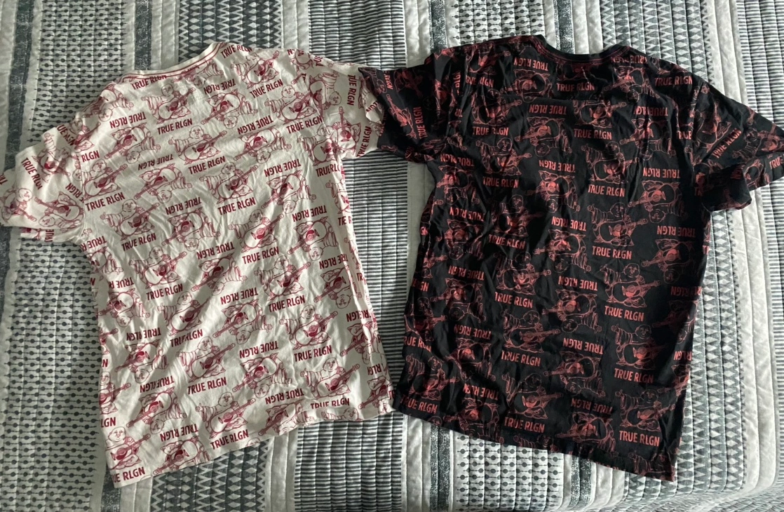 I have two Men’s True Religion T-Shirts in size medium $25 each or $40 for both. Excellent condition as my son prefers plain shirts and only wore them 1-2 times.