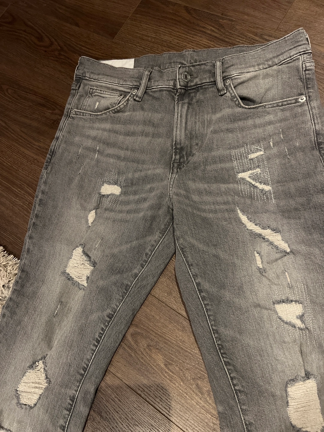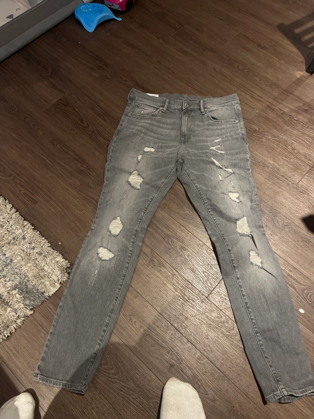 Grey H&M skinny jeans with a "skinny coupe moulante" label. These were $69.99 never been worn . Brand new just missing the tags .