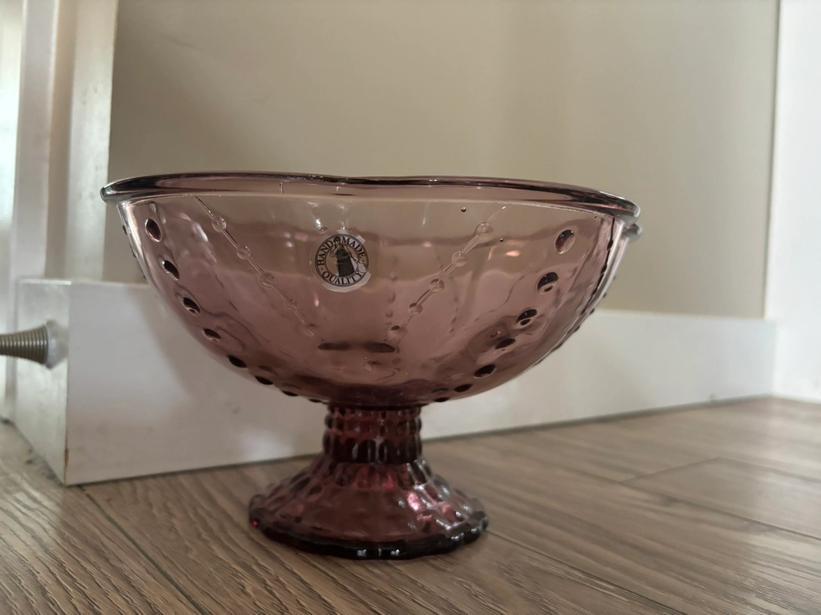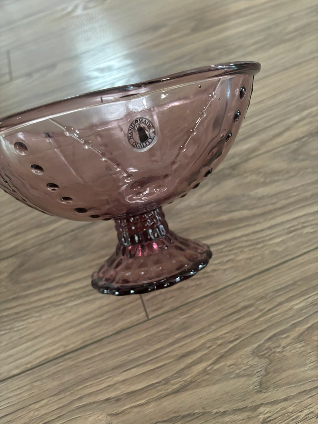 Vintage IKEA Yngaren pedestal bowl, amethyst colour, hobnail design. Handmade, mouthblown glass - sticker still in tact. Perfect condition. I love this piece and have the matching perfume bottles and smaller pedestal bowls but this one is too big for my shelf. Had to buy it because it’s so pretty! For collectors, there are several coordinating pieces to the Yngaren set. I have a ton of decor items I’m downsizing so if this isn’t your style, I have several other items I’m selling! Located in Ellerslie, cash only