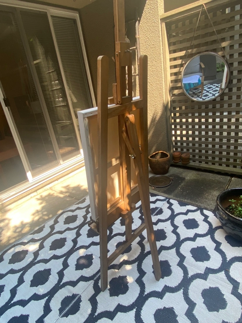 A wooden easel with adjustable height. I used it to paint. Ive converted to a smaller easel and would like to sell. Great easel for artists, art students. Excellent easel and good shape. #art #easel #student