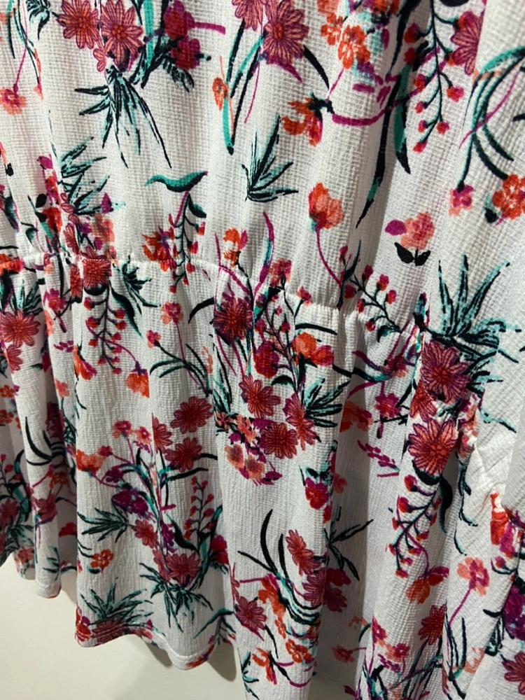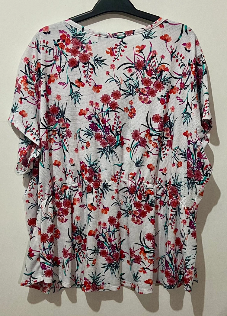 Easy wear and care blouse with peplum style at back for stretch comfort and style! Material is polyester and spandex.