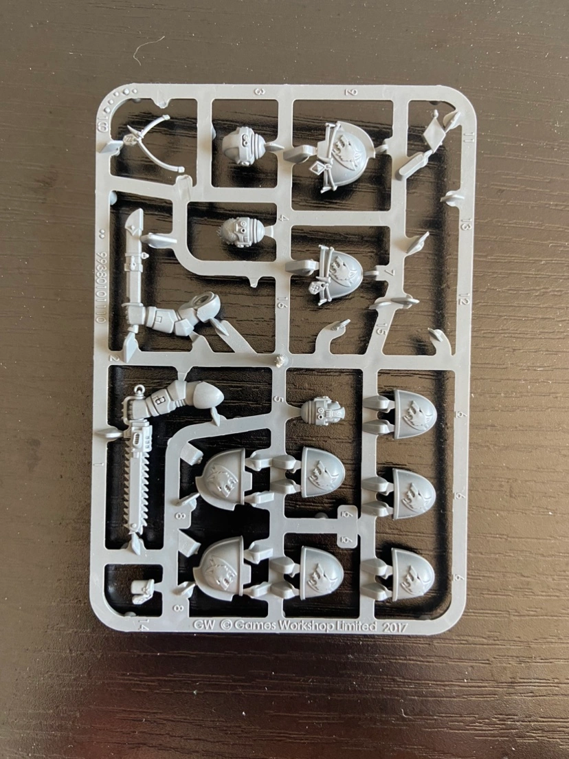 Warhammer 40,000 Primaris Upgrade Sprue for Space Wolves Chapter. This sprue is incomplete with a price to reflect this. All heads and shoulderpads present. Awesome sprue to spruce up your Space Marines. Refer to the circled red portions of the 3rd photo for the bits missing! I also have another full space wolves sprue on my profile, check it out. Cash Only, Parkdale Pickup.