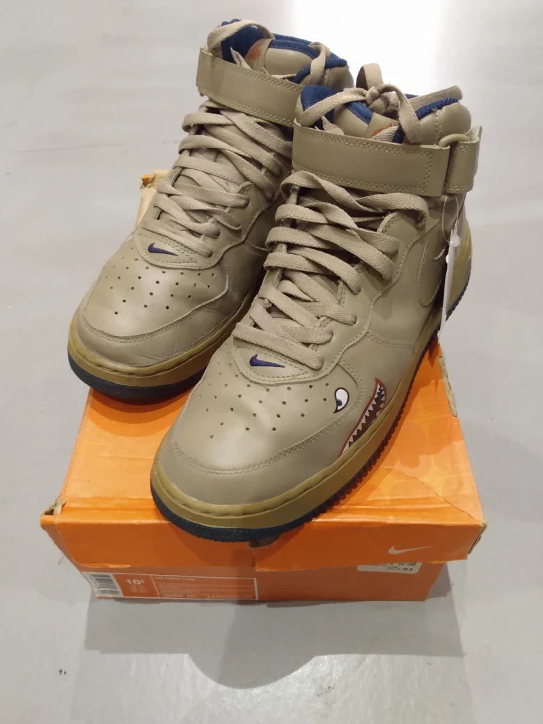 Men's Nike Air Force 1 high top sneakers, size 10.5 They are used but other than some mild cosmetic wear to decals they are in excellent condition. They come with their original box. A skilled and steady hand can restore the decals to their former glory. These shoes go for a few hundred to over a thousand on the collectibles market, even in used condition.