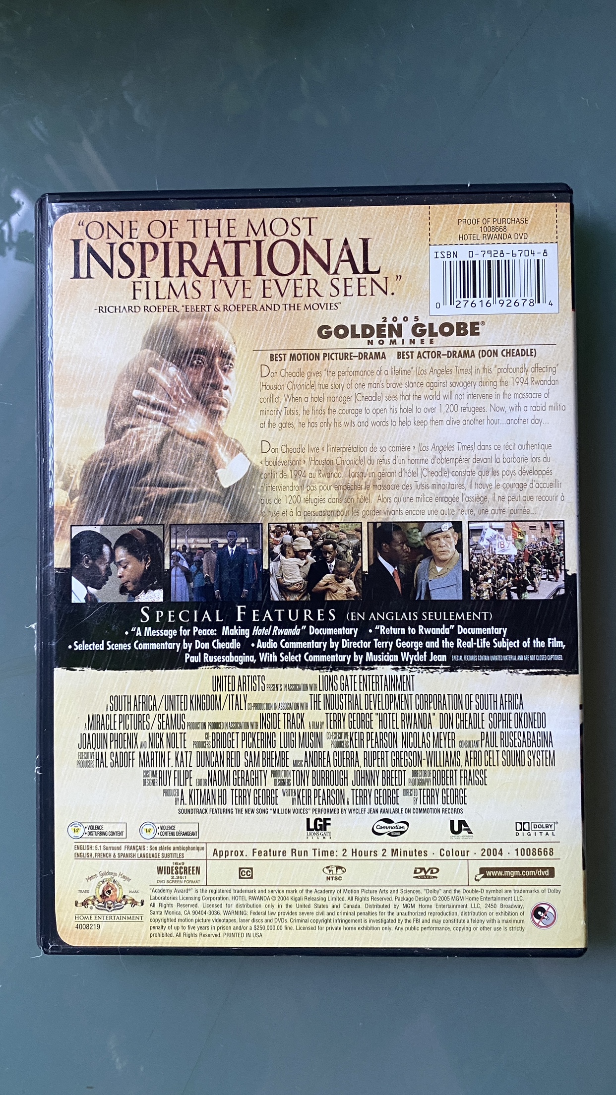 Hutu Paul Rusesabagina manages the Hôtel des Mille Collines and lives a happy life with his Tutsi wife and their three children, but when Hutu military forces initiate a campaign of ethnic cleansing against the Tutsi minority, Paul is compelled to allow refugees to take shelter in his hotel. As the U.N. pulls out, Paul must struggle alone to protect the Tutsi refugees in the face of the escalating violence later known as the Rwandan genocide.
