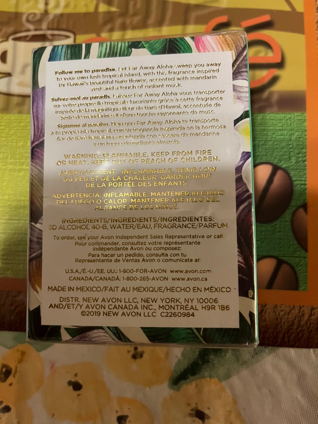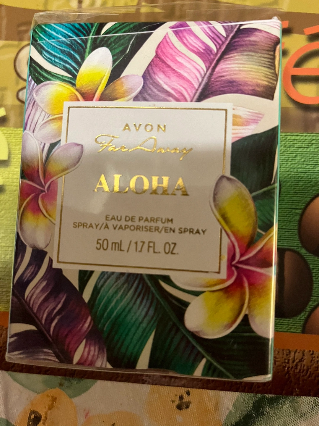 A bottle of Avon Far Away Aloha Eau de Parfum.