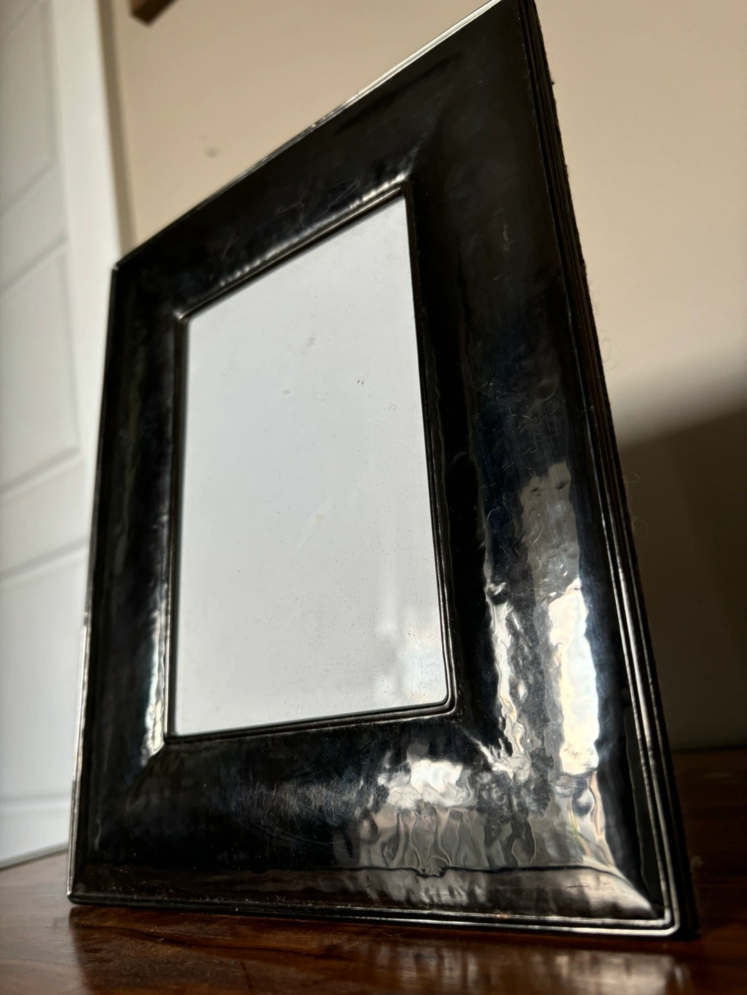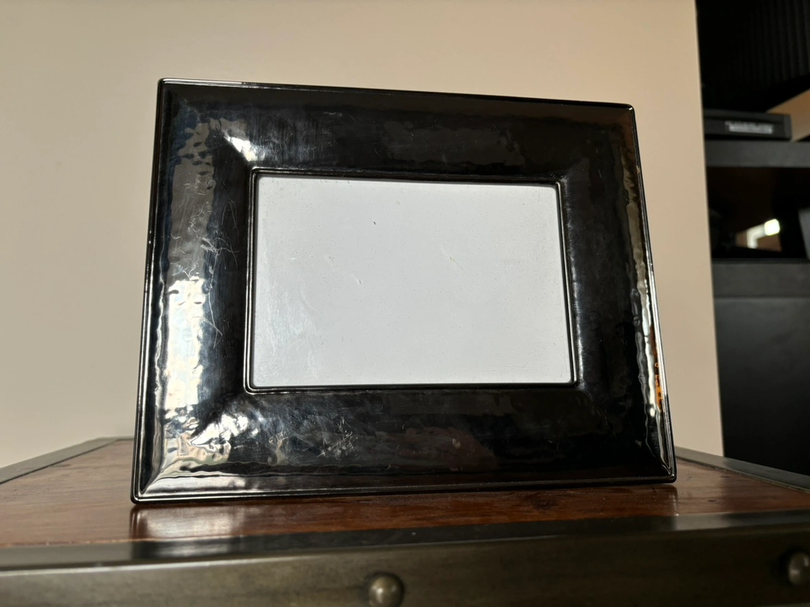 Made of glossy metal with a hammered finish. Stands horizontally or vertically. Exterior dimensions: 7” x 9” Interior dimensions: 4” x 6” I’m also selling several other frames and decor items!