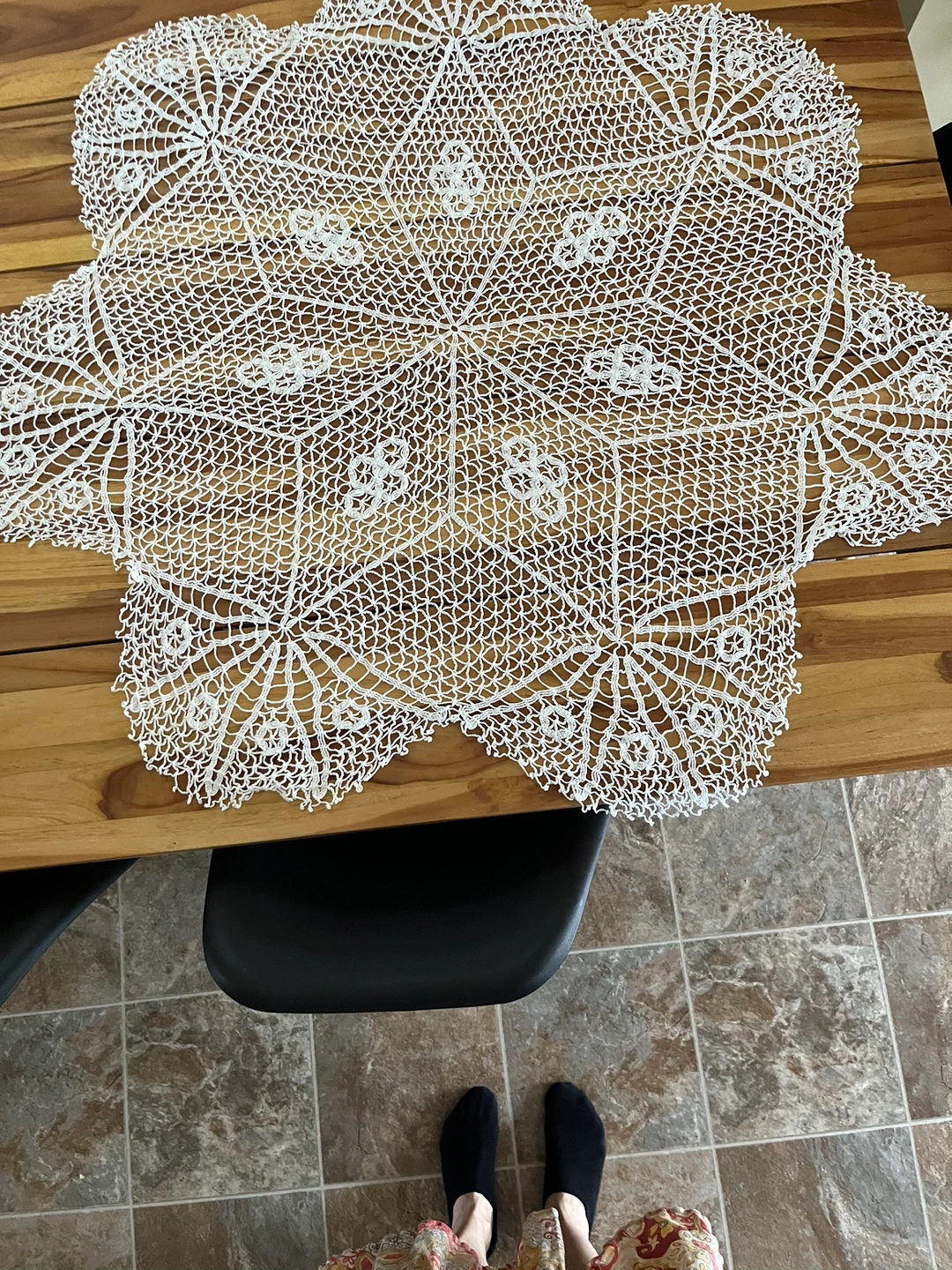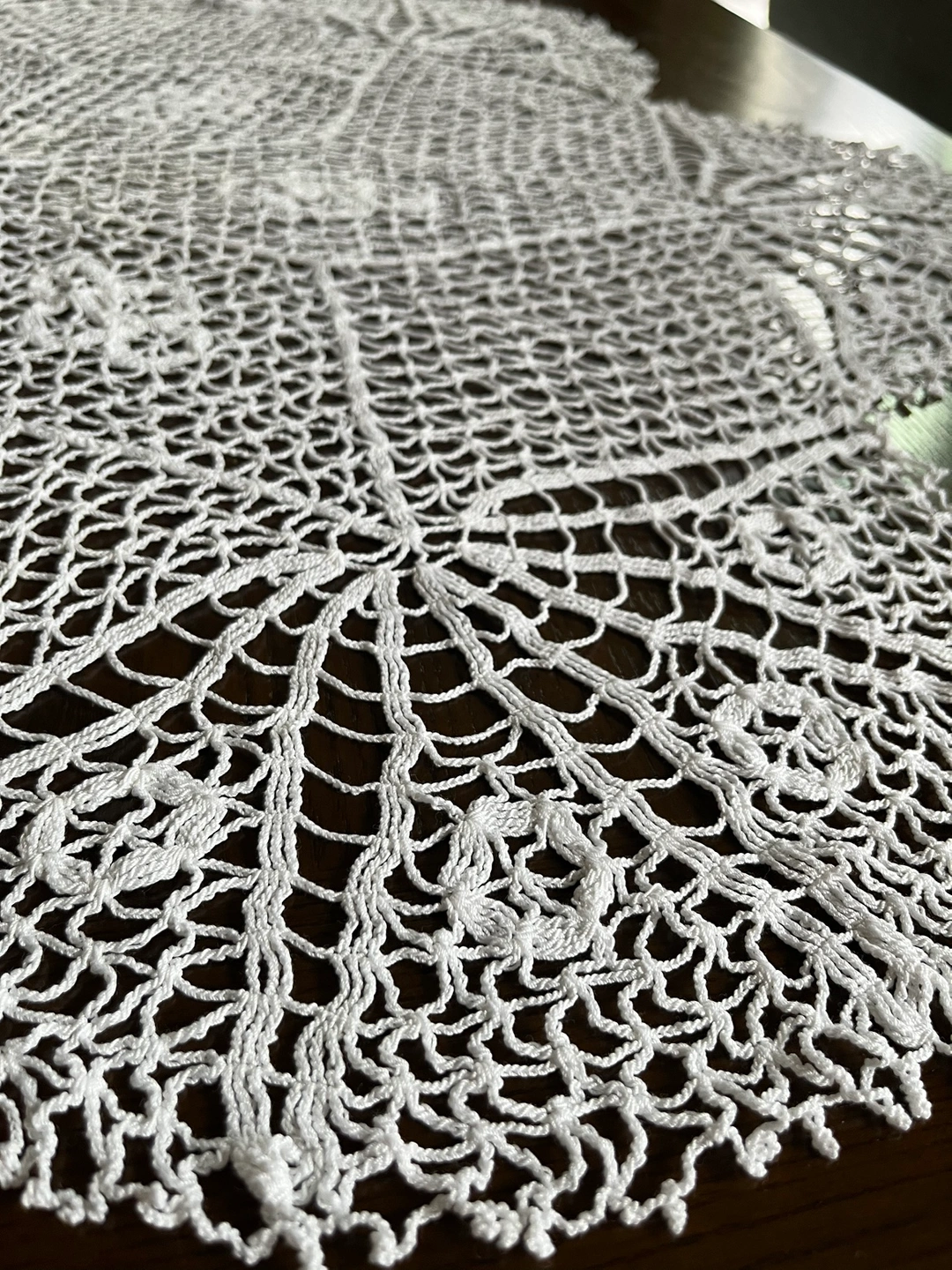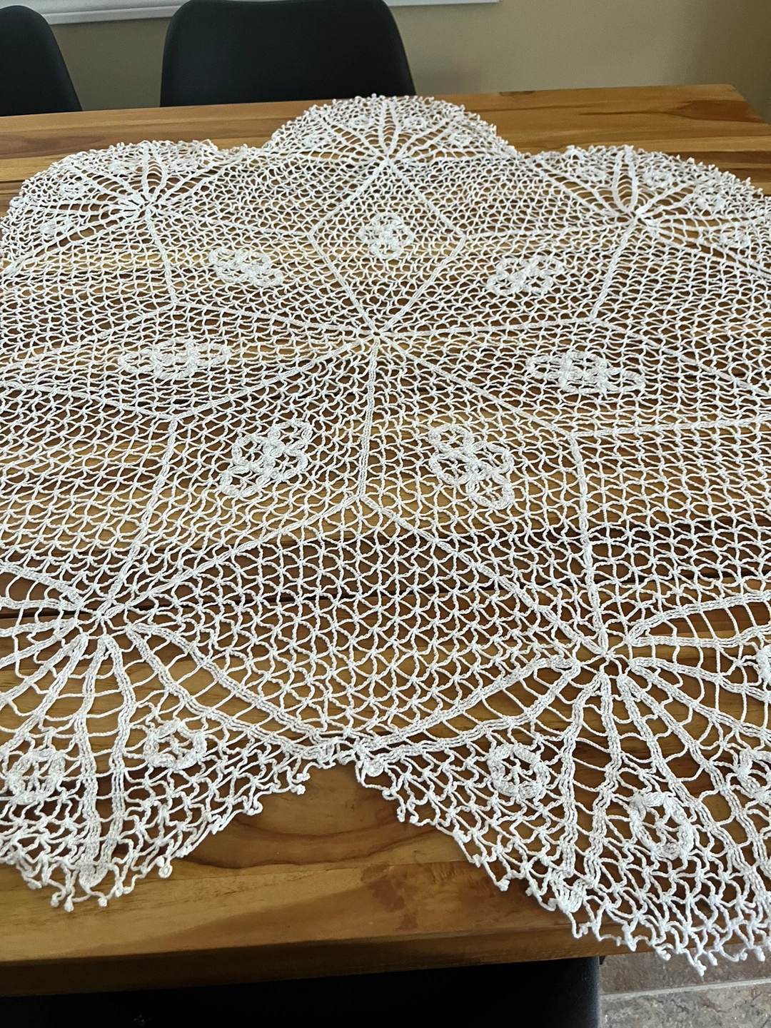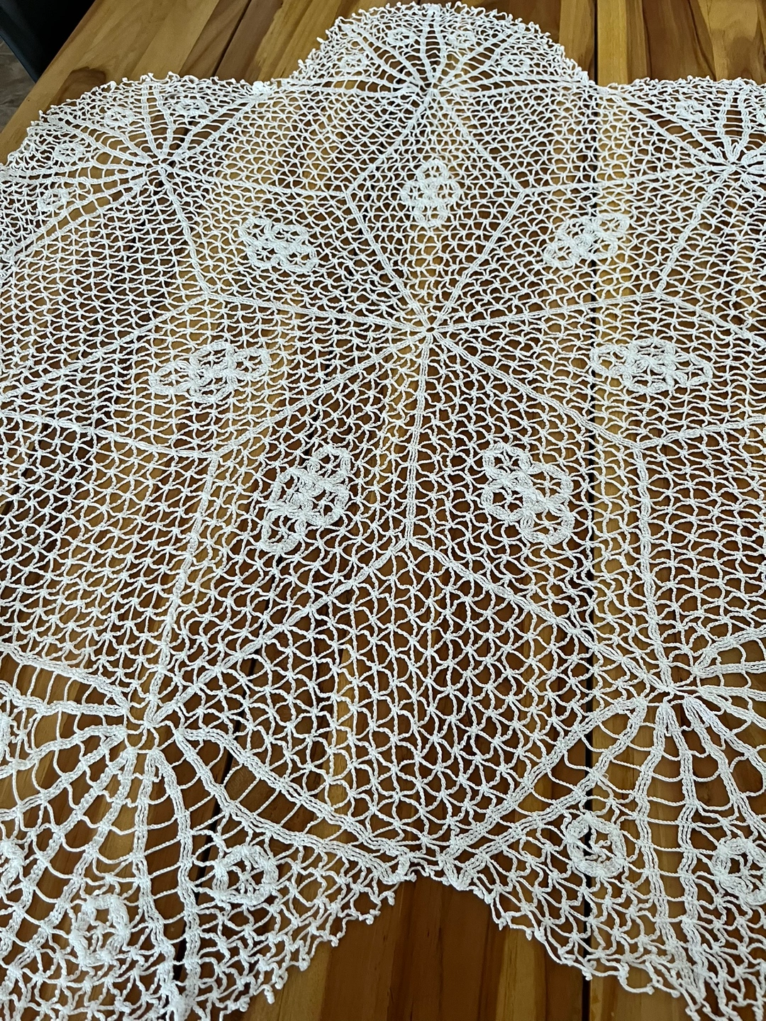 Circular crochet doily. This doily is large and could be used for a variety of purposes. 100cm