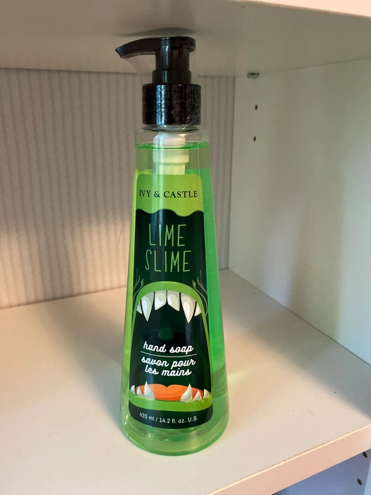 Ivy and Castle hand soap in pump bottle. 420ml bottle Lime Slime is the scent
