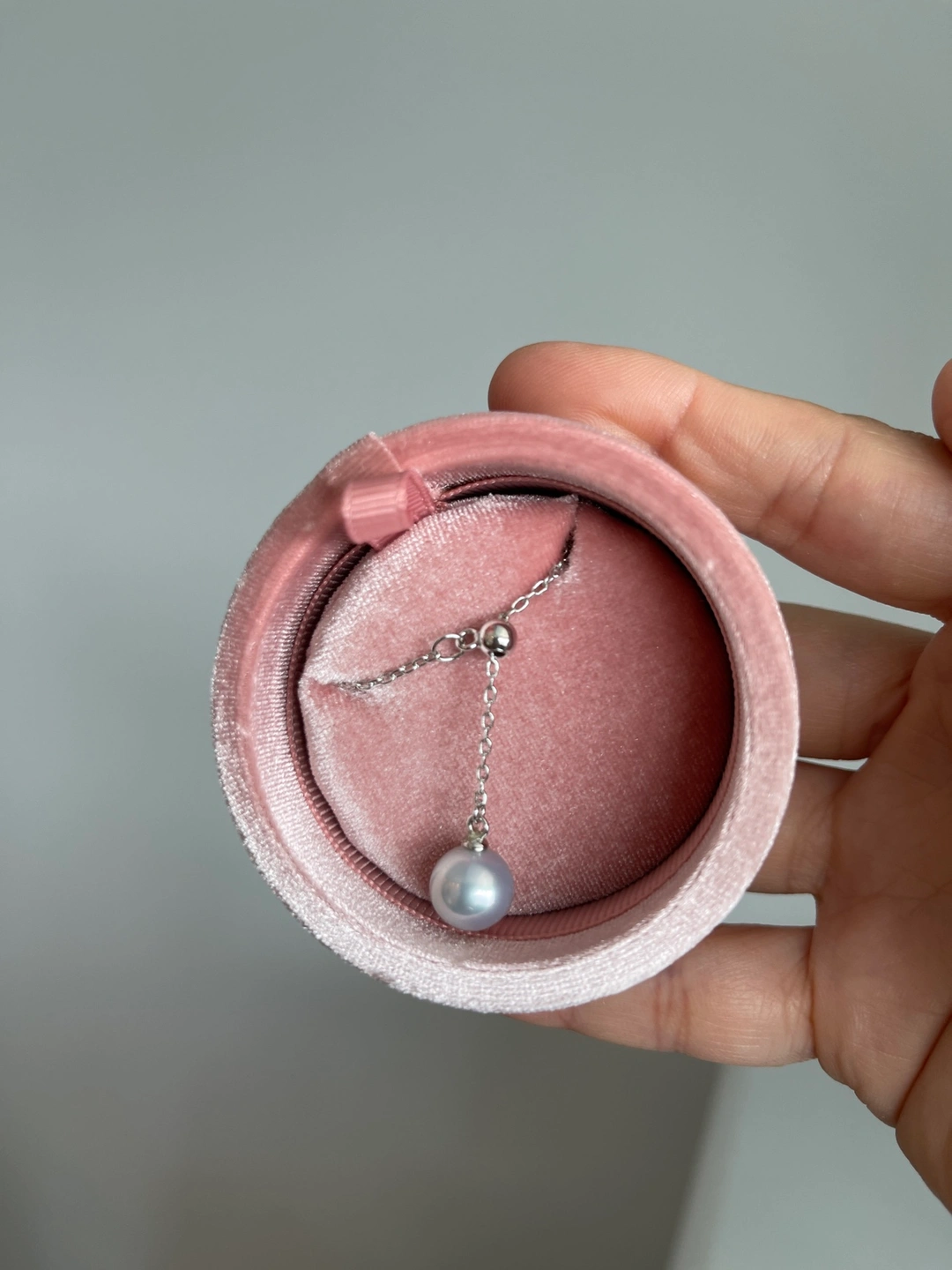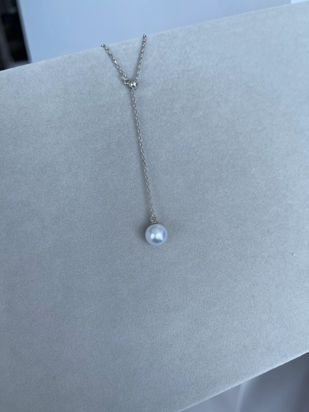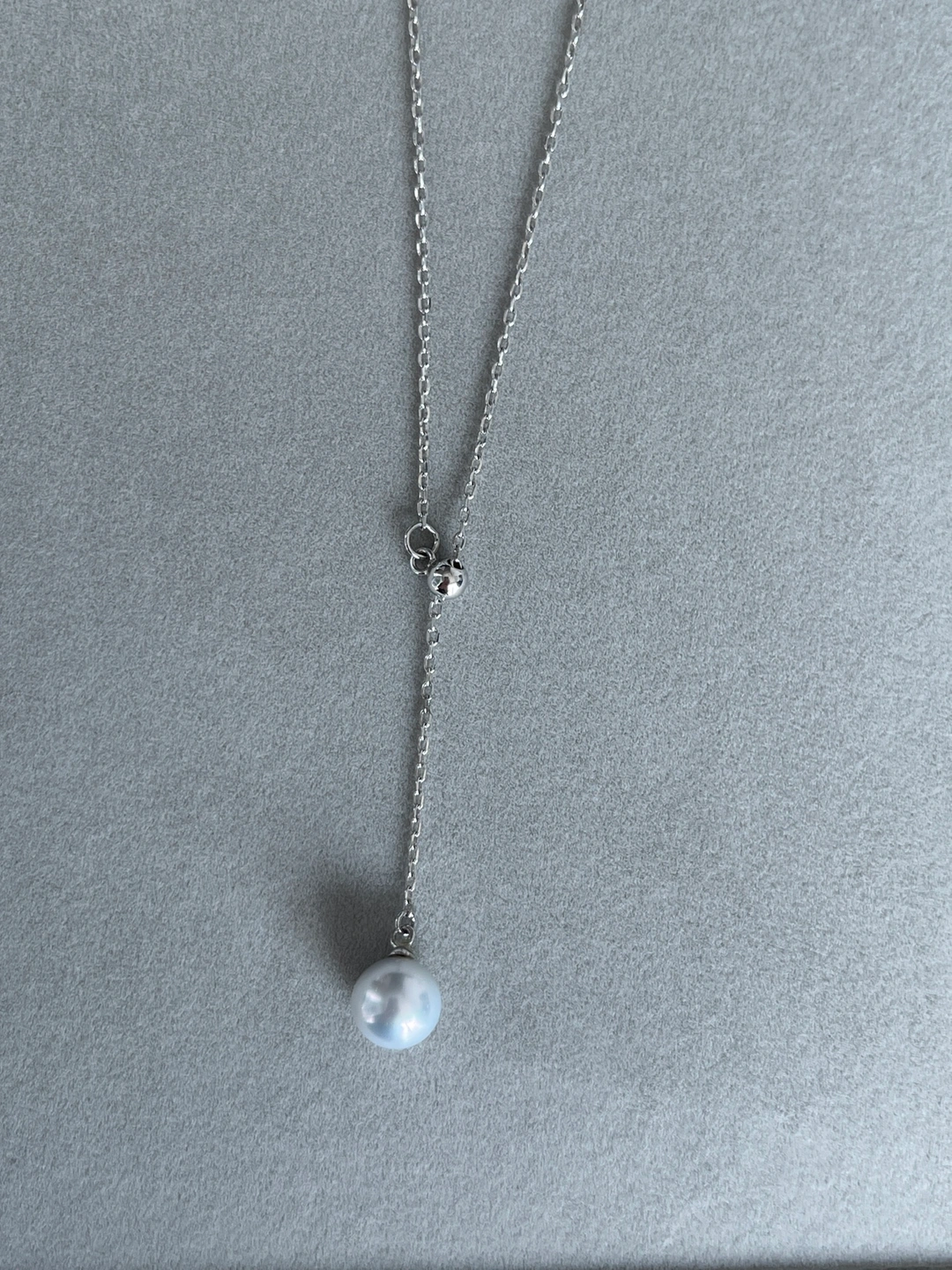 A 925 silver chain with a single 9mm silver white south sea pearl attached. Good lustre, clean surface & round shape. Comes in a pink velvet gift box and gift bag. Perfect for gift. This is a brand new jewelry made by me. The necklace is adjustable in length.