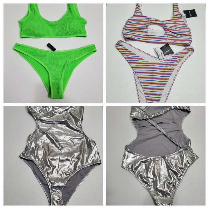 * ALL BRAND NEW, with tags and hygienic liner * Asking for half of selling price * Green 2-piece: Sold for $24.90, asking $4 * Striped 2-piece: Sold for $20, asking $3 * Silver one-piece: Sold for $10, asking $3 ● 3 for $9 ● SMOKE-FREE/PET-FREE HOME