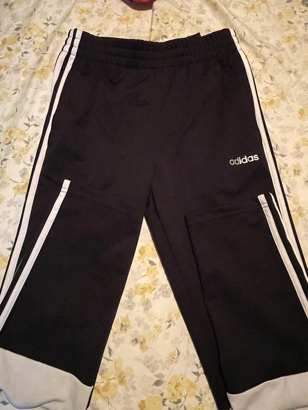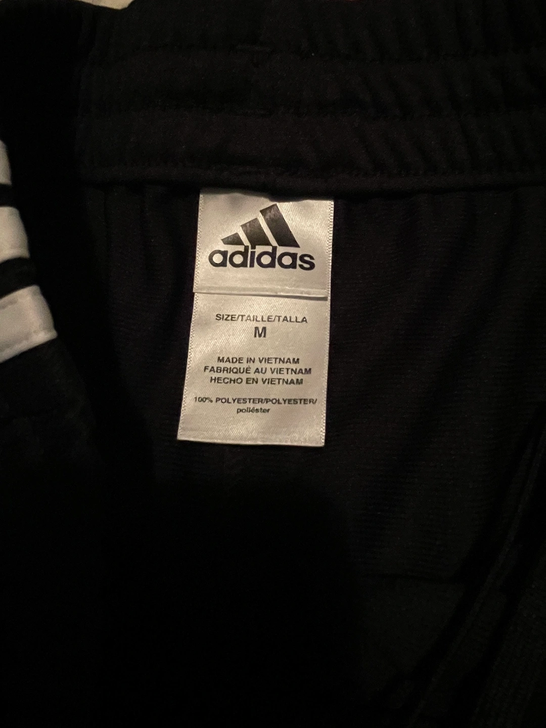Black Adidas track pants with white stripes Like new, lightly worn Size medium No major damages, stains or discolouration