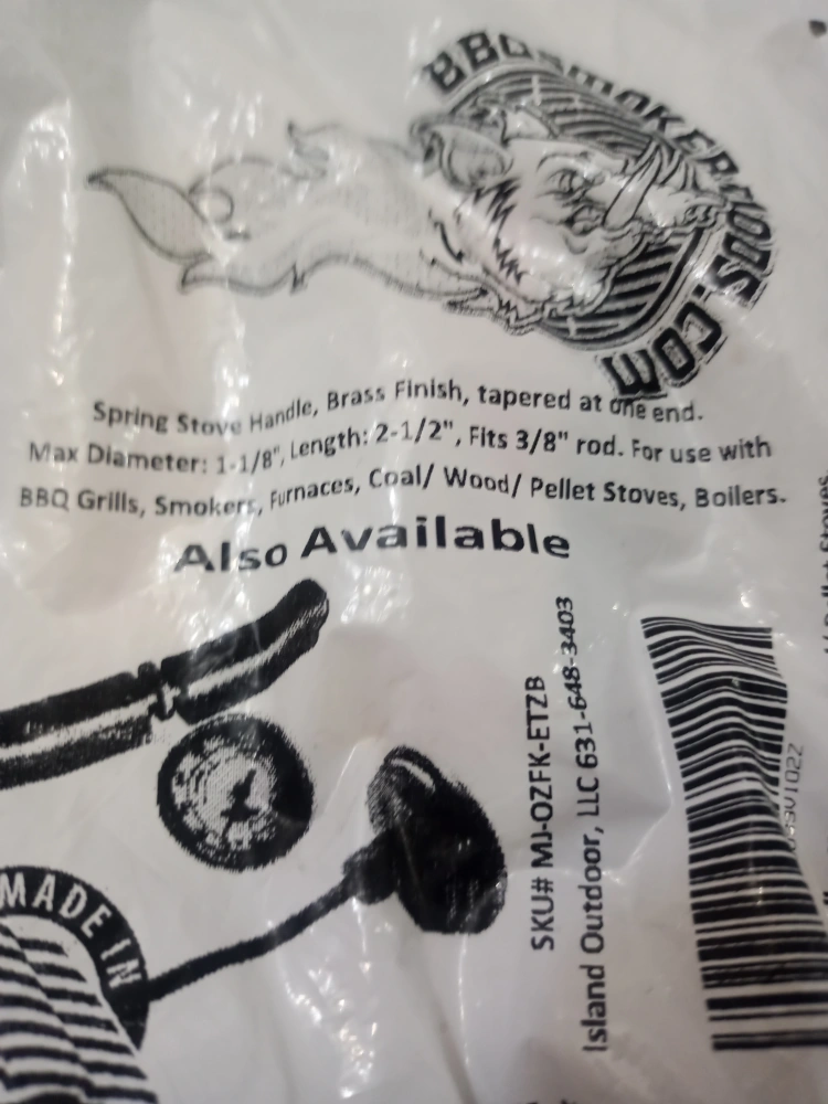 New. Max Diameter: 1-1/8", Length: 2 - 1/2" , Fits 3/8" Rod. For use with BBQ Grills, Smokers, Furnaces, Coal / Wood / Pellet Stoves, Broilers.
