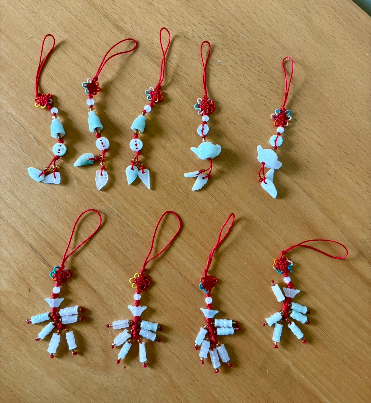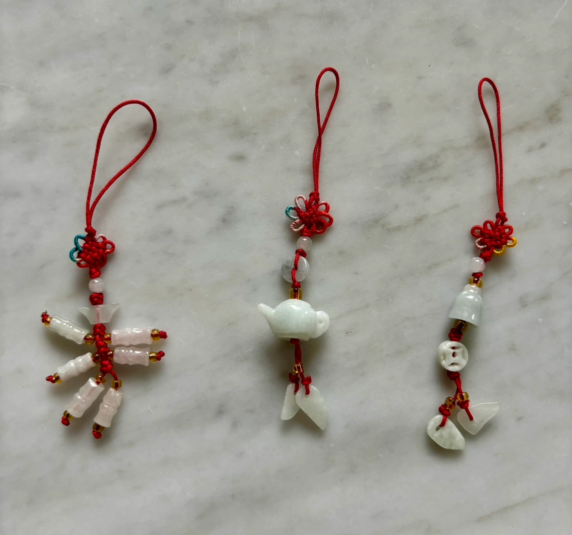 Natural jade fortune charms with red string. About 10cm/4β long including the string. $2 each. Click on my name for my other listings and pickup locations.