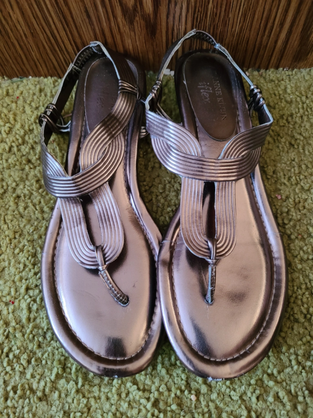 Anne Klein - brown shine - sandals VS - white heels $5 each