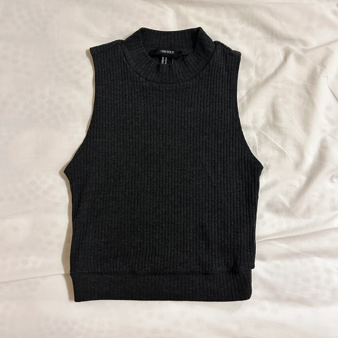 Black ribbed sleeveless crop top with mock neck. Size Medium. Made from soft material. Looks great with high waisted pants or skirts. Pick up only.