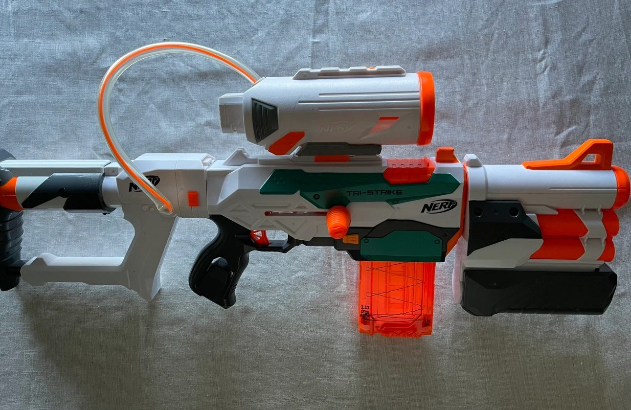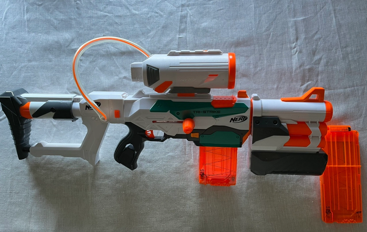 Good condition nerf blaster. No bullets however. Including an extra 12 round magazine along with the blaster itself. Price is negotiable.