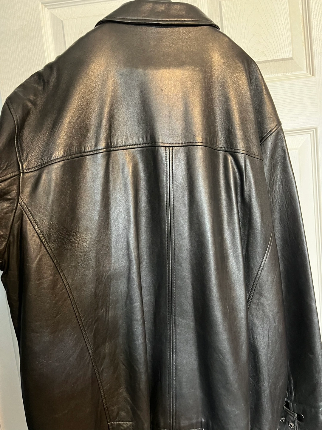Men’s Black Leather Jacket Size XL Longer Jacket, Amazing Condition Non Smoking House (Nothing Wrong with the Jacket, It’s extremely clean) $9. Pick up/ Porch Pick Up Only Dufferin & Overbrook 10 Minutes from Yorkdale Mall
