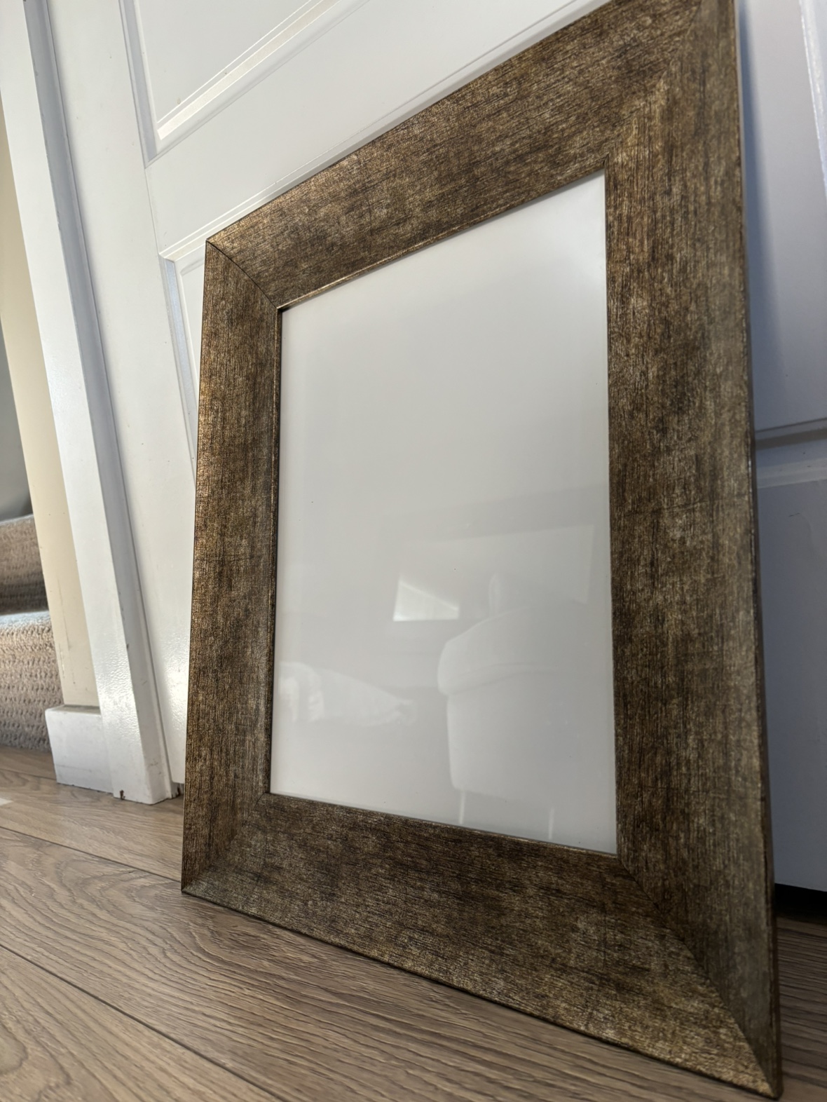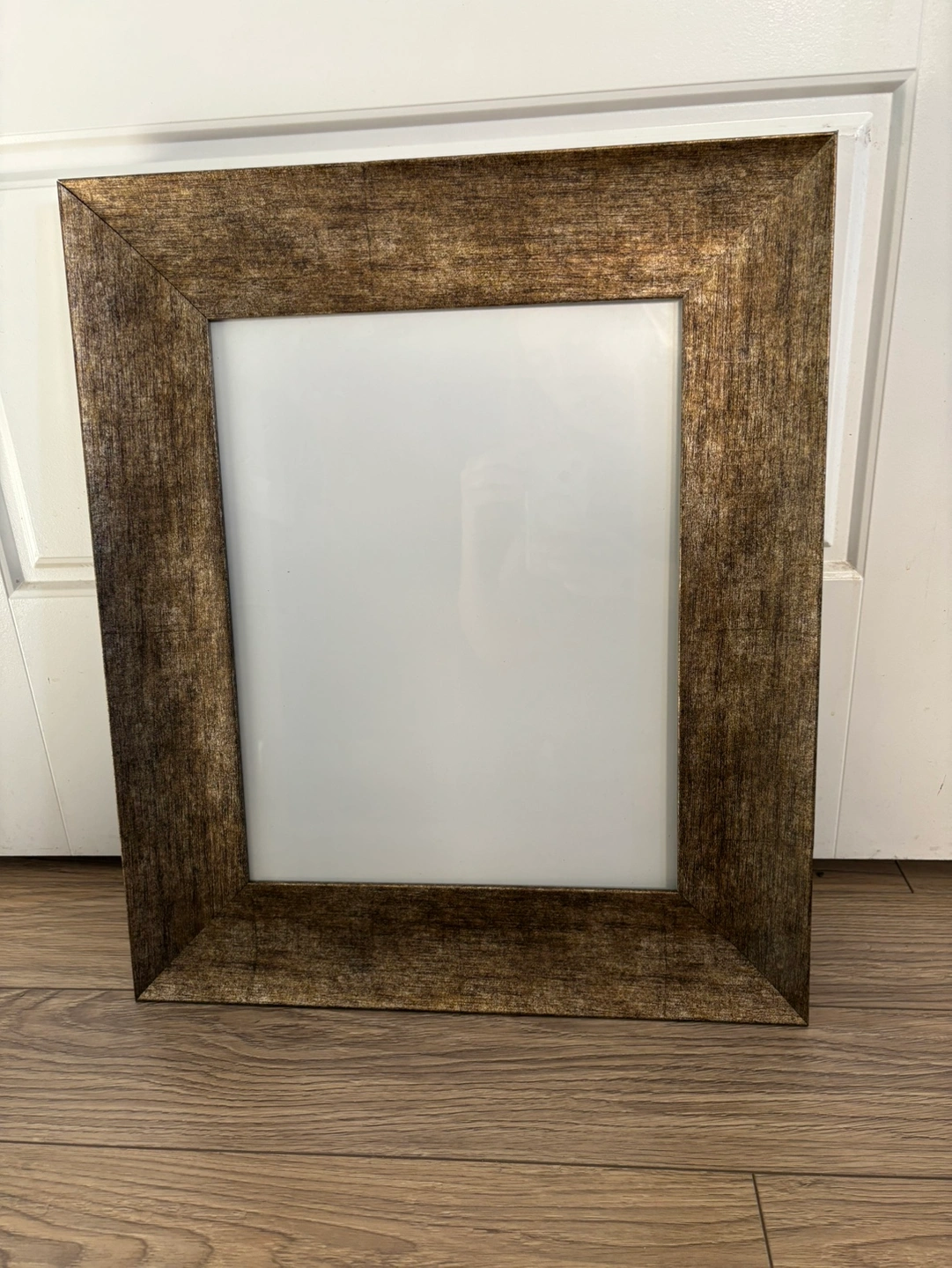 Distressed brushed gold frame, hangs horizontally and vertically. I have several frames and home decor items I’m selling as I need to downsize my collection. If you’re looking for any of these items, please check out my listings! Located in Ellerslie, cash only.