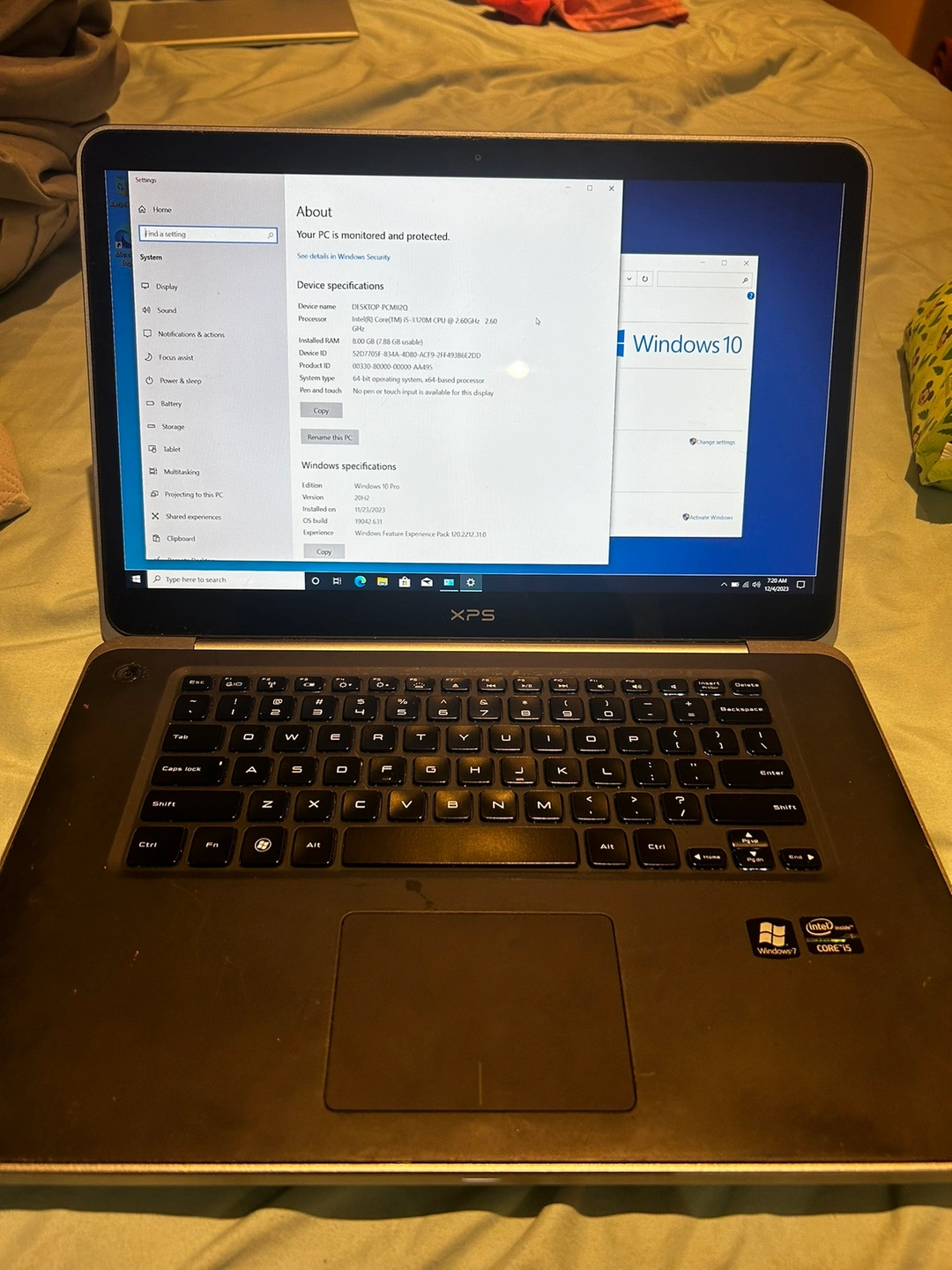 Dell XPS 15 Laptop in perfect working condition , windows 10 64 bit installed and activated Intel core i5 2.6Ghz 8GB ram 256 SSD drive 1920 x 1080 resolution 15 inch wide screen Laptop in perfect working condition there is a invisible crack in outer layer of the glass and you can only see it in light no damages tomorrow LED screen or laptop functionality Good working condition laptop