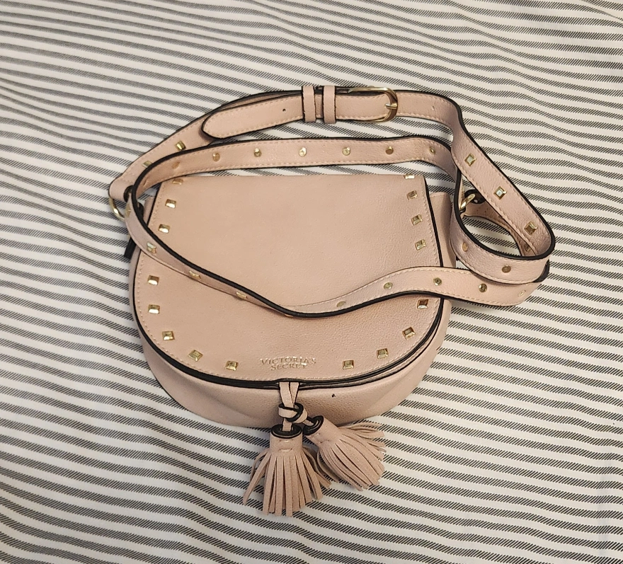 A stylish and practical bag with a unique design. Perfect for everyday use or a night out. Features a adjustable strap, a flap closure with a tassel detail and a spacious interior. • Faux leather. • Magnet button closure. • Single Compartment. • Never used. • Few small scratches across bag (3 give or take).