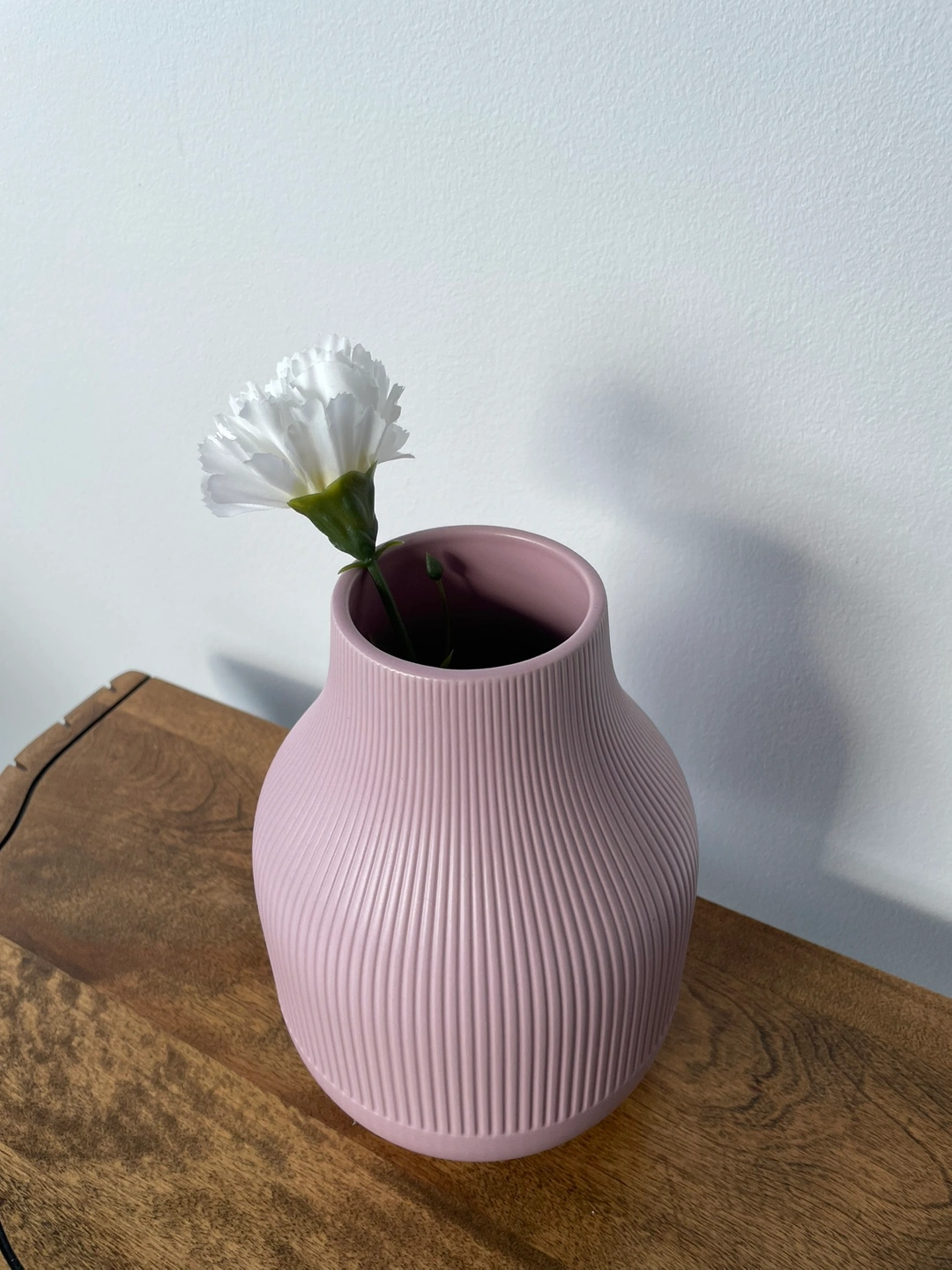A lovely pink ceramic vase with a ribbed design. The vase is approximately 9 inches, in perfect condition. Bought from IKEA. See more details here: https://www.ikea.com/ca/en/p/gradvis-vase-pink-60334703/?utm_source=google&utm_medium=surfaces&utm_campaign=shopping_feed&utm_content=free_google_shopping_clicks_Decoration&gad_source=1&gbraid=0AAAAACqC6EojyYCcO-_T9L9ataHDTBrKG&gclid=Cj0KCQjwwuG1BhCnARIsAFWBUC0BAGlWYtp06ZJaAd6wIM7ffNKwJ0a0IPrt9DRawBubAxHX5eMYC7waAuNgEALw_wcB