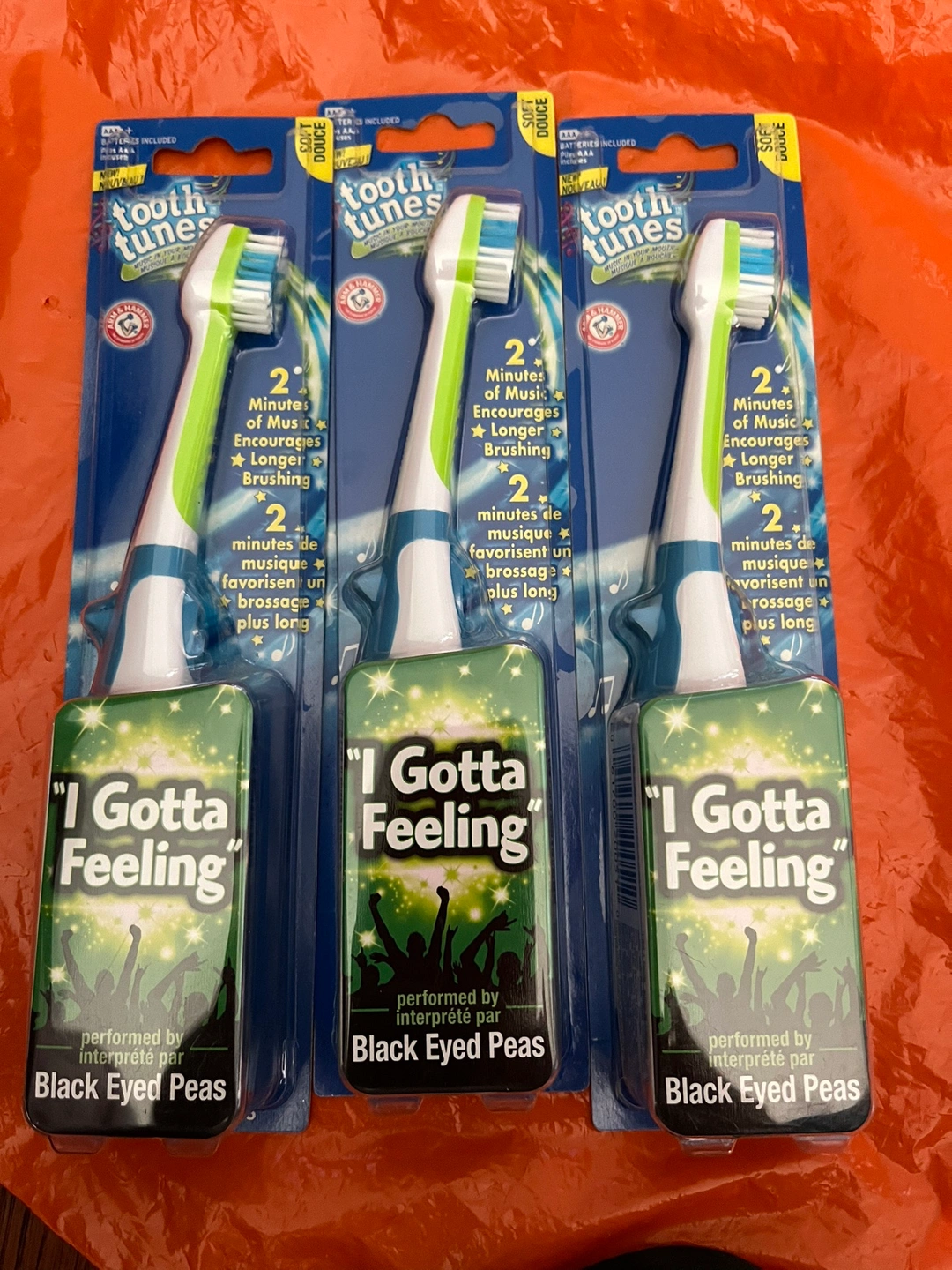 Three new, unopened electric toothbrushes that play "I Gotta Feeling" by the Black Eyed Peas while you brush. ‼️MOVING SALE‼️ Location for pickup 1661 DENISON STREET INTERSECTION OF KENNEDY DENISON ONE BLOCK NORTH OF STEELES CLOSE TO PACIFIC MALL Low ballers will not be answered my price is fixed. No Refunds / Exchange. If you see it posted on here it means it is still available, so please don't ask. Just tell me when would you like to pick up. Feel free to also check my other listings!
