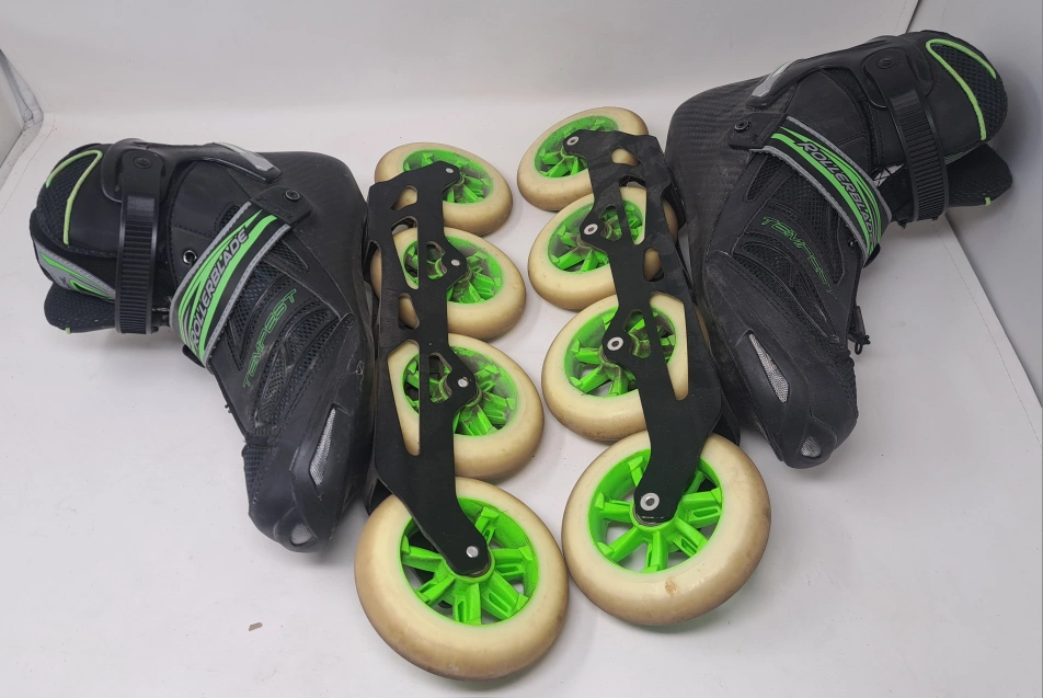 made in USA- high quality - big wheels top of the line open to offers in Excellent condition very gently used very well cared for. insoles are missing have to be replaced
