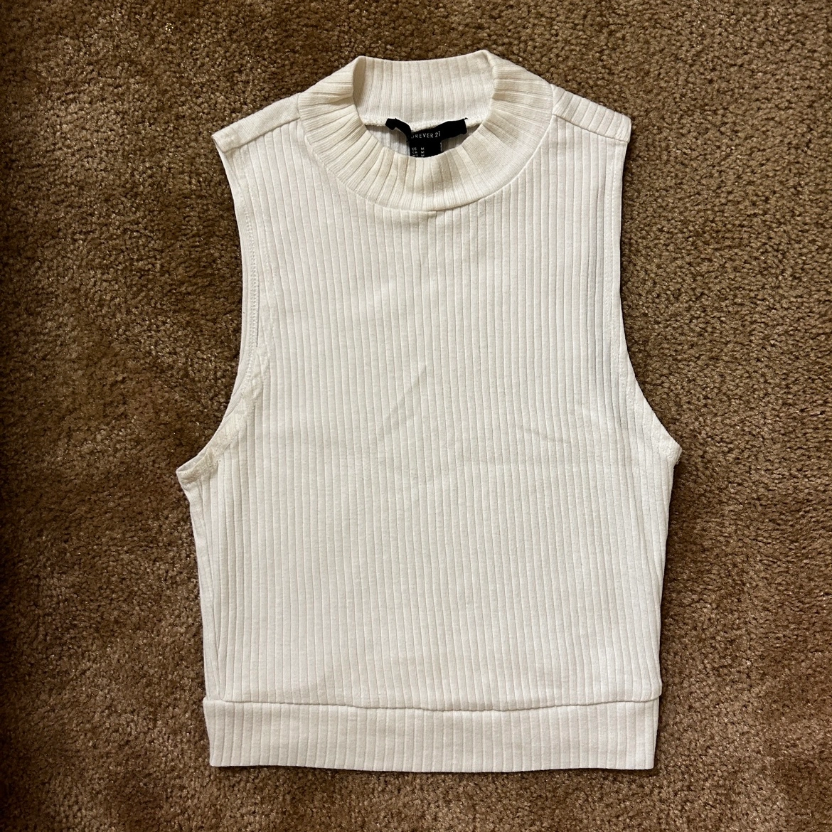 Sleeveless ribbed white crop top from Forever 21. Mock neck. Fits true to size. Great for layering in the colder months. Pick up only.