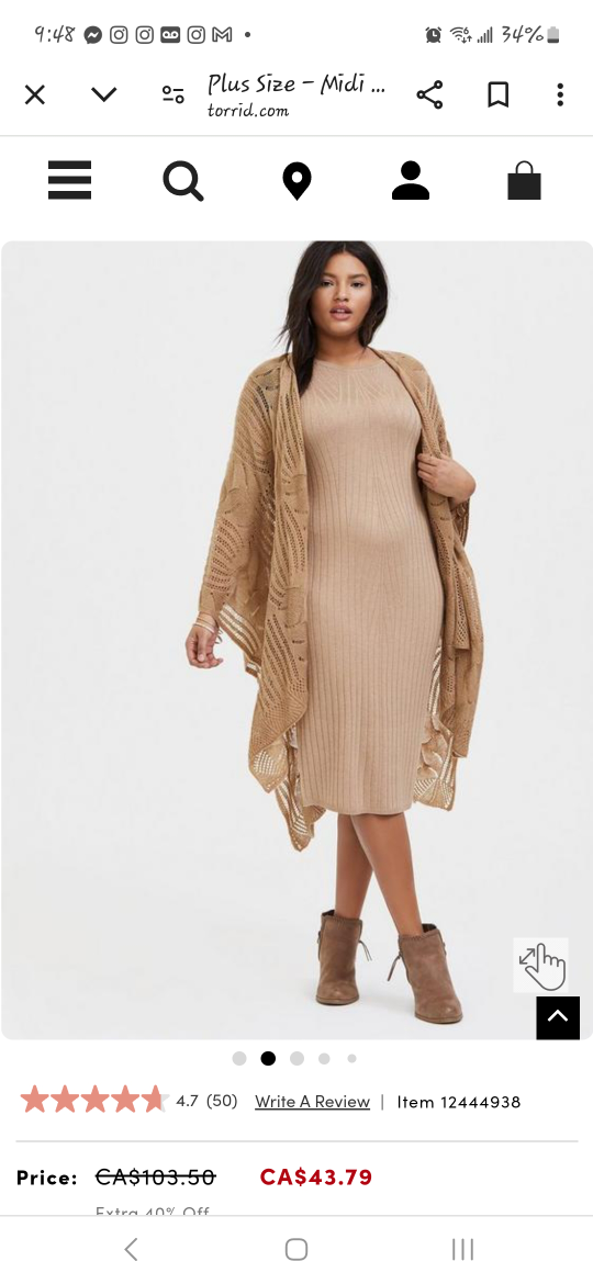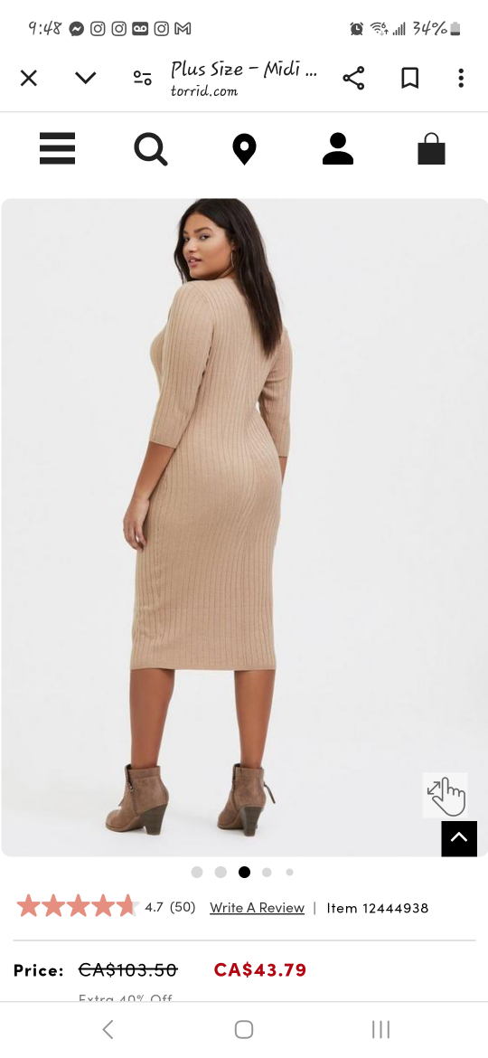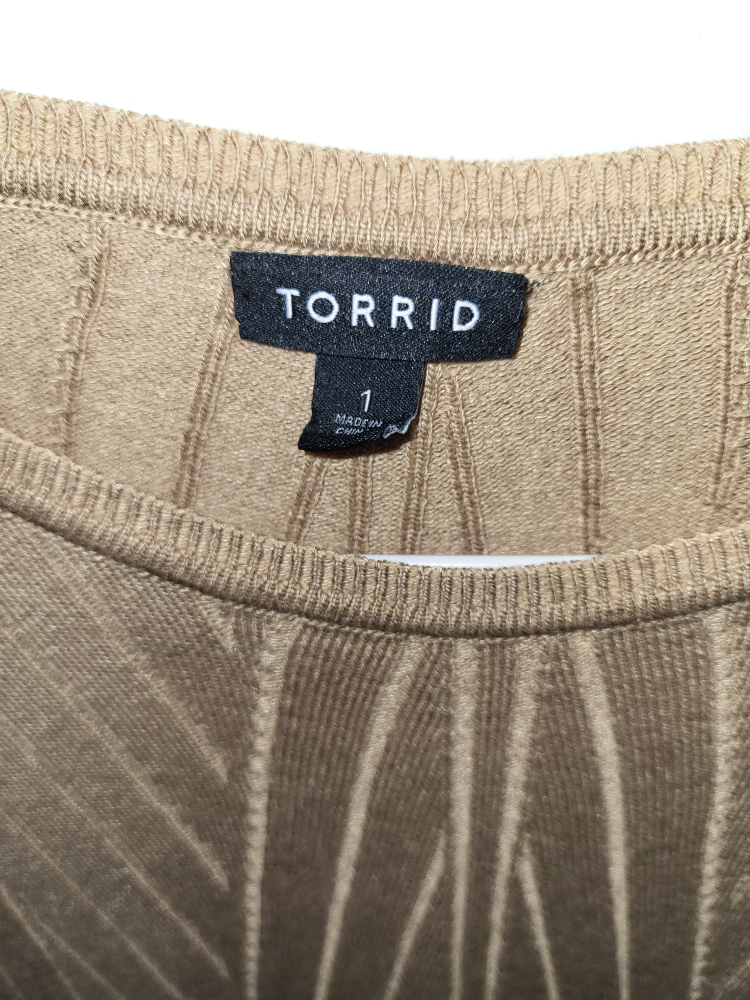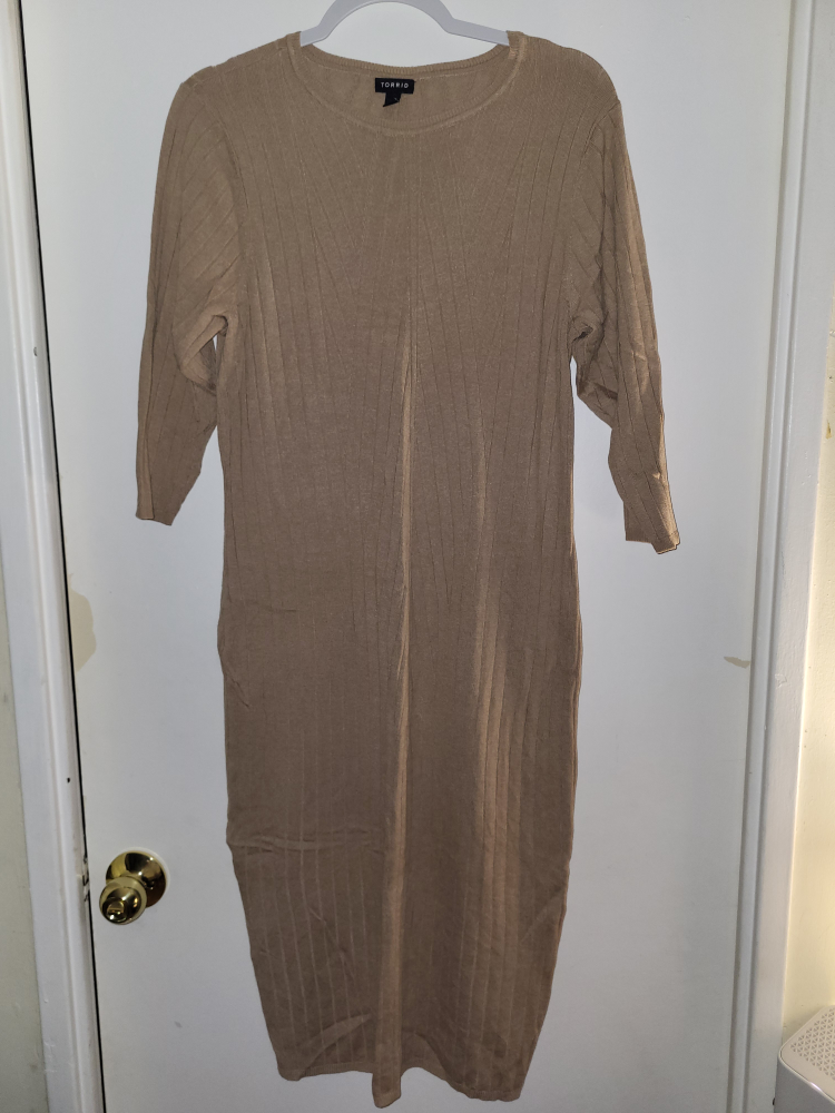 A long sleeved, brown knit midi dress with a scoop neck. It has a fitted silhouette and a ribbed texture. It is perfect for casual or semi-formal occasions. Torrid brand Washed, never worn. Retails for $109. Currently on sale for $43. Size 1 Pick up in Toronto, near Keele and Finch