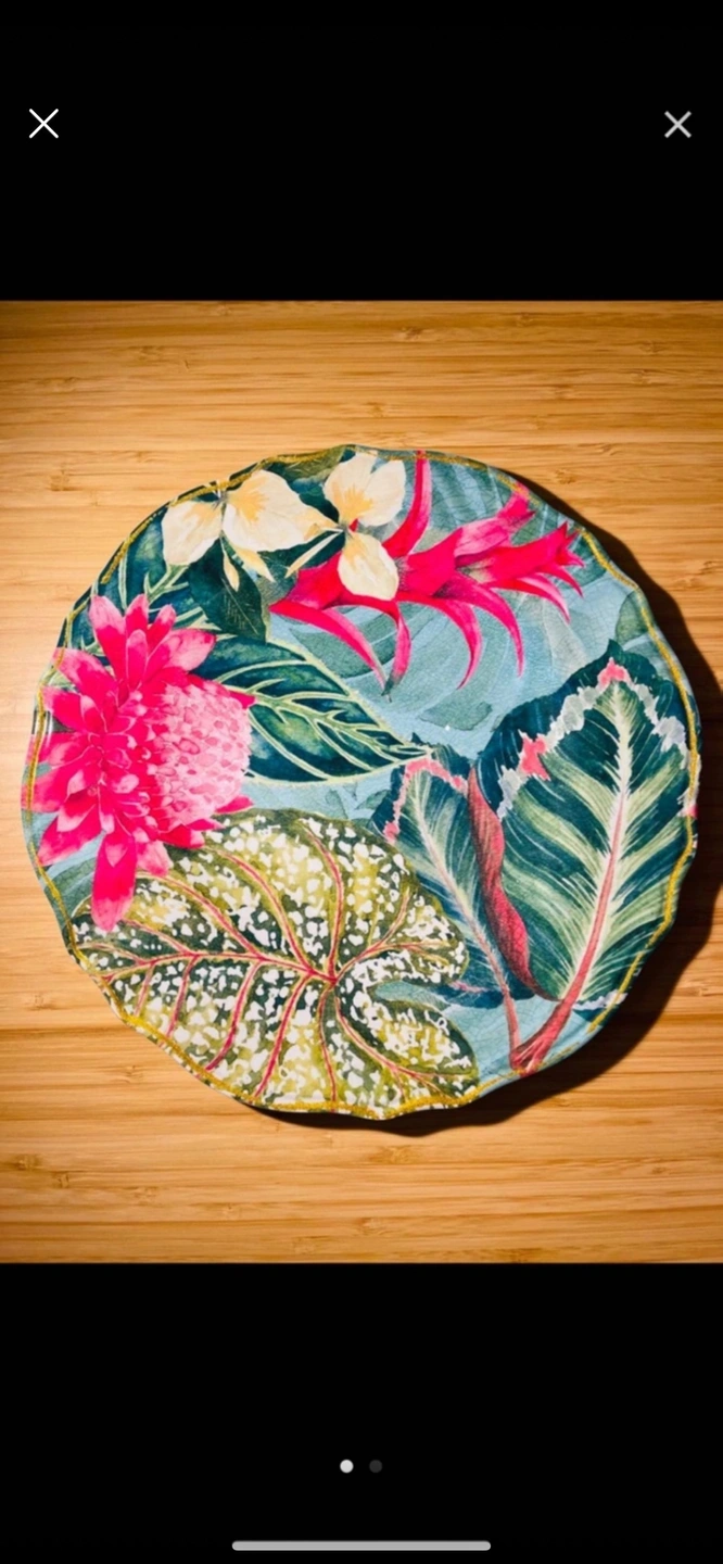 NICOLE MILLER FLORAL Dinner Plate MELAMINE 11" Palm Leaves. -Comes from a pet-free/smoke free home. -Pick up only Yonge and Eglinton area -Cash only.