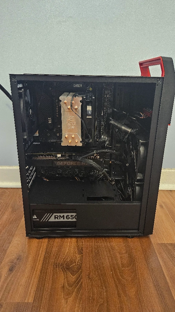Newly built custom PC using parts I upgraded on. Very capable machine for productivity and gaming, even at 1440p. CPU: AMD Ryzen 5 3600 GPU: Nvidia 3060ti Motherboard: MSI B450 Gaming PRO Carbon MAX WiFi Power Supply: Corsair RM650x 650W Modular Gold PSU RAM: 16 GB DDR4 Storage: 1TB