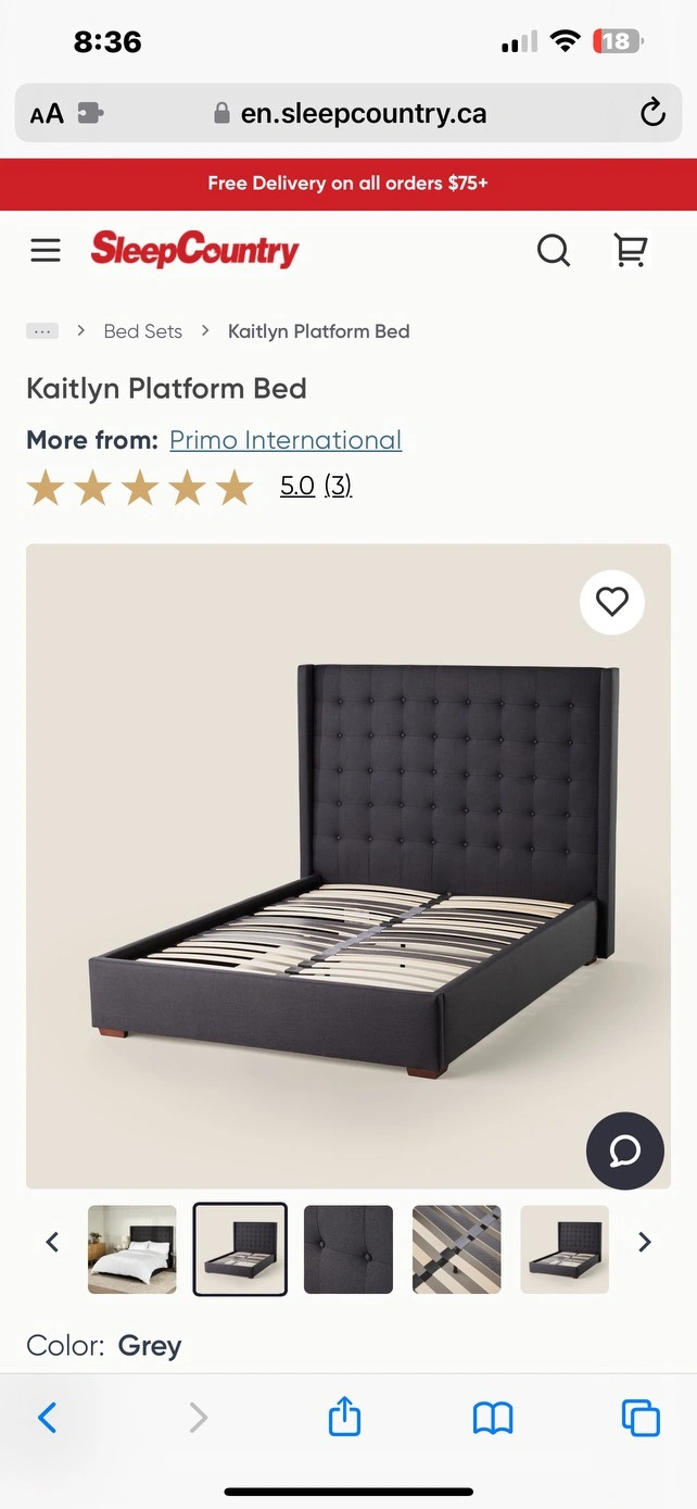 Mattress not included With its winged sides and button tuft details, the Kaitlyn Bed helps create the ultimate sleep oasis in any bedroom. Exclusive to us, the Kaitlyn Bed features a fully upholstered headboard, footboard, and sides in a classic linen-look fabric, adding a touch of elegance and comfort to your space. The Kaitlyn Bed's Smart Slat system offers customizable support for individual pressure points, ensuring a comfortable and restful night's sleep. The fully upholstered headboard, side rails, and footboard provide a cohesive and stylish look. Constructed with a wood and plywood frame and sturdy wood legs, this bed is designed for durability and stability. With its platform design, there's no need for a boxspring. The Kaitlyn Bed has a weight capacity of 550 lbs, making it a practical and luxurious addition to any bedroom. Elevate your sleep experience with the Kaitlyn Bed, where elegance meets comfort, creating a serene and stylish bedroom environment.