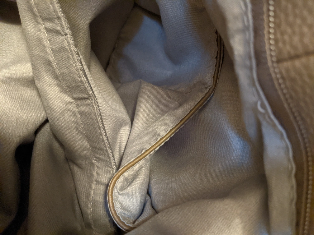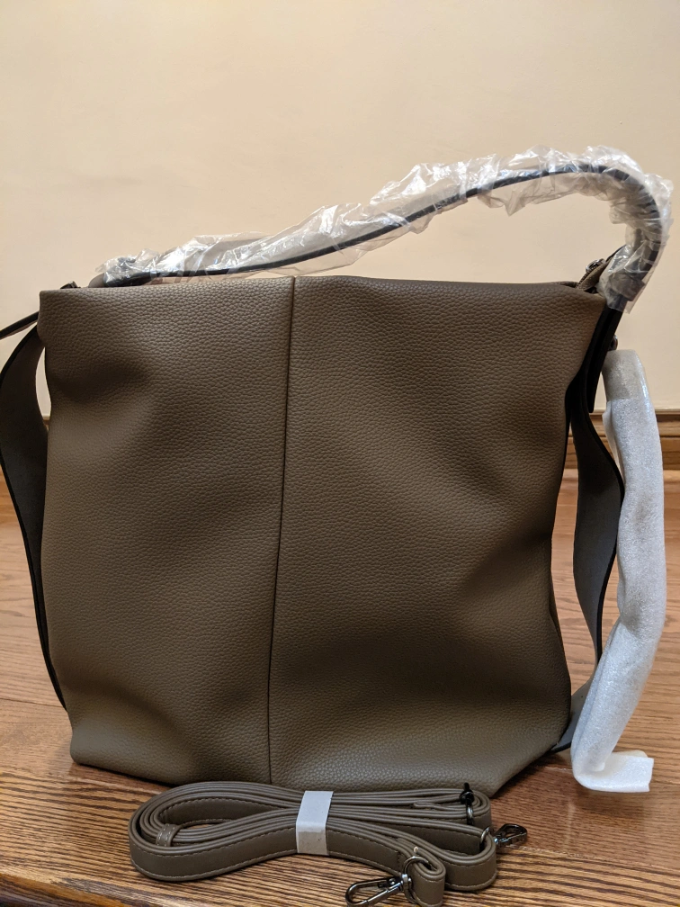Shoulder/Crossbody. The bag has a zipper closure and a smaller zippered pocket on the front. A few compartments inside. Can easily accommodate letter size paper/folders