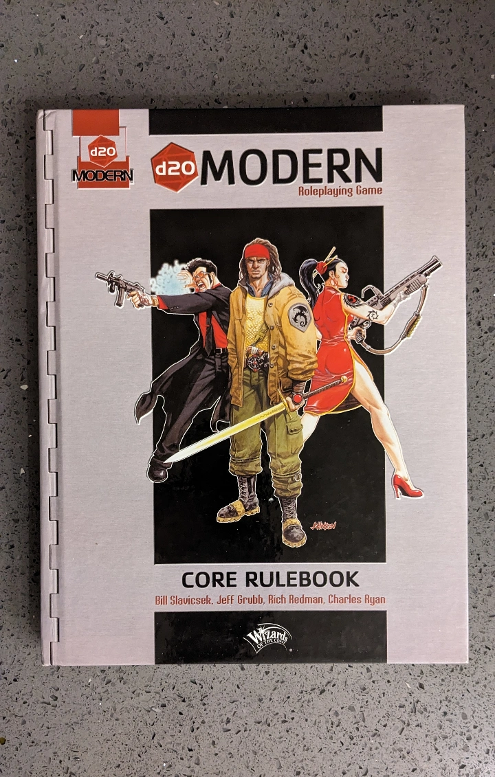 D20 Modern Roleplaying Game Core Rulebook Tabletop RPG "A complete d20 roleplaying game that handles any contemporary fantasy theme. This product is designed to be the sole core rulebook for all modern roleplaying game settings using the d20 System, which is the basic rules system for the Dungeons & Dragons® roleplaying game. Thematically aligned with the highly popular heroic fantasy and horror genres, this book will build on the strength of the growing d20 System while attracting new players. The product contains everything needed to run an entire campaign, as well as four campaign models and adventure hooks to add to existing campaigns."