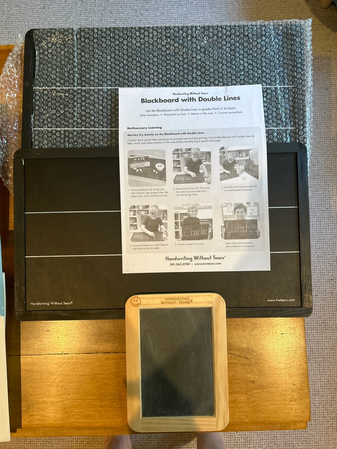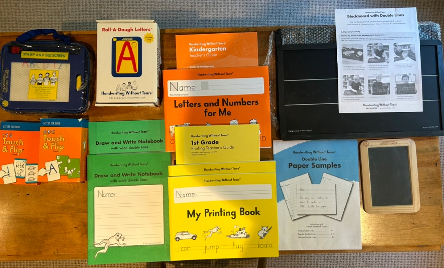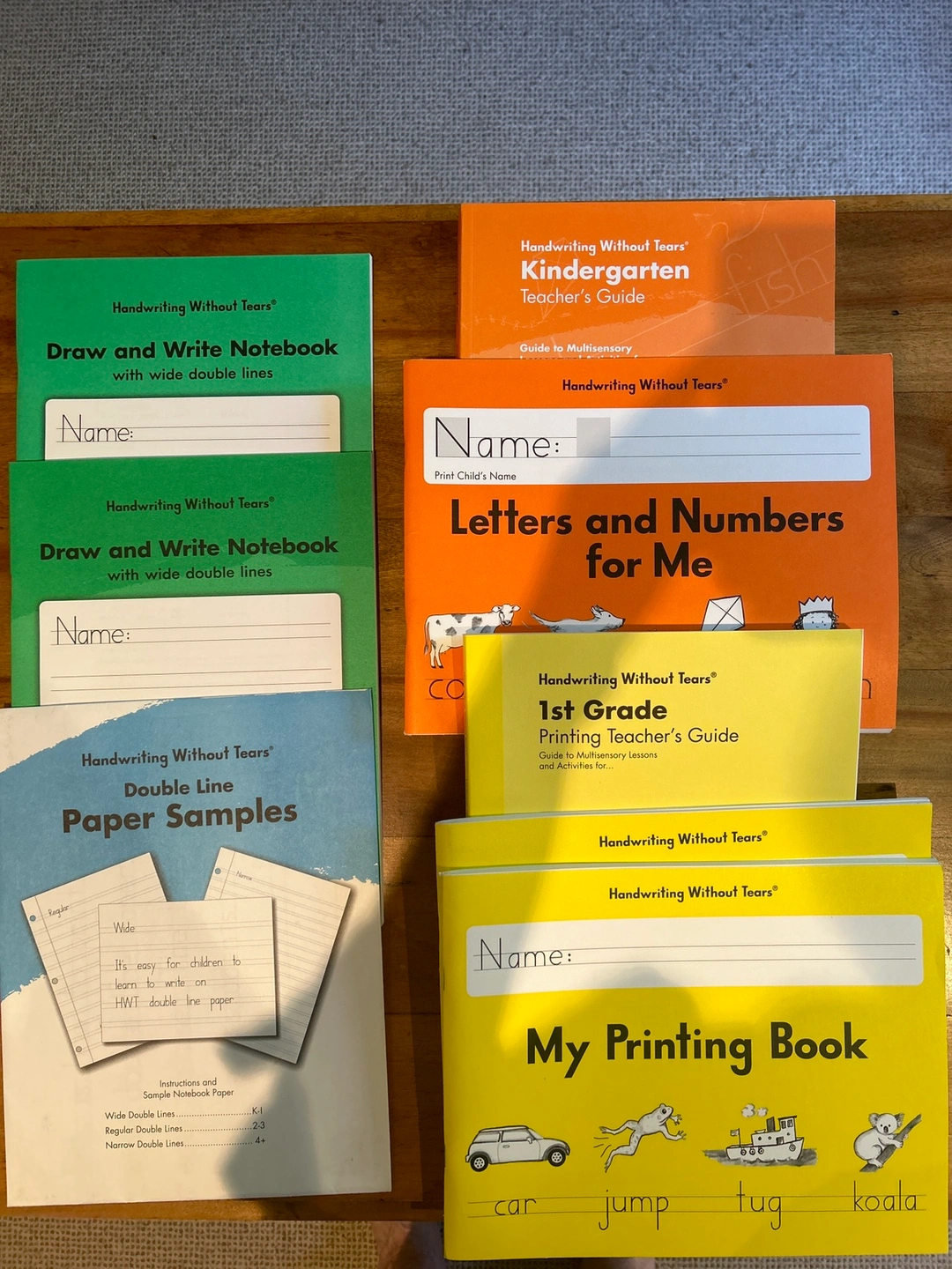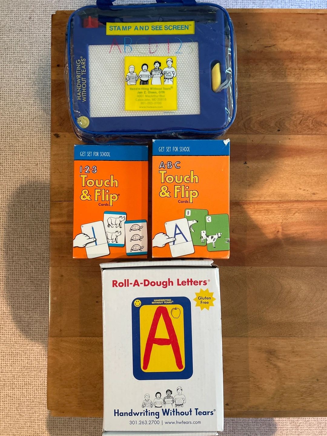 A comprehensive Handwriting Without Tears educational set, perfect for teachers, homeschoolers, or parents looking to enhance their child’s handwriting skills. This bundle includes everything you need to support handwriting practice from preschool to early elementary levels. Here’s what’s included: Roll-A-Dough Letters: A hands-on tool for learning letter formation through play. ABC Touch & Flip Cards: Interactive cards designed to teach alphabet recognition and sounds. Letters and Numbers for Me Workbook: A structured workbook focusing on handwriting practice. My Printing Book Workbook: Supports children in mastering print handwriting with fun activities. Draw and Write Notebook (2 books): Encourages creativity while practicing writing. Two Handwriting Without Tears Chalkboard with Double Lines: A classic tool for helping children learn correct letter formation. Double Line Paper Samples: Essential for practicing proper handwriting spacing. Slate Chalkboard: Ideal for reinforcing letter formation and handwriting through tactile practice. All items are from the Handwriting Without Tears curriculum and are in excellent condition. This set is perfect for building strong handwriting foundations in a fun and engaging way.