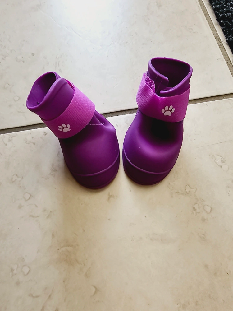 Pair of purple dog boots with pink straps and paw print detail. never used.. Pick up in TowerHill Dairy Queen in Richmond hill or in Yonge and Eglinton intersection.
