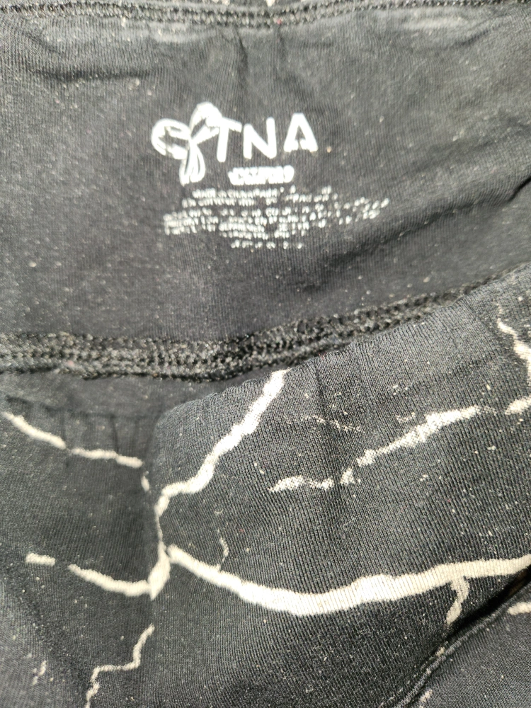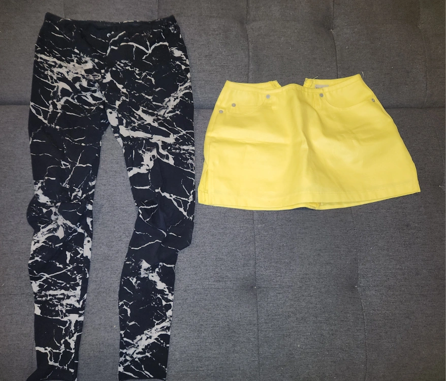 Each in excellent condition. Yellow skirt with shorts sewn under and functional pockets. Zipper in the back. Coming from smoke free, pet free home. No stains. No rips. Size 1. TNA Leggings. Size XS. No stains. No rips. $10 total for both. Pickup only. Cash only.