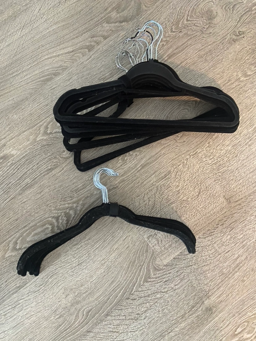 A pack of black velvet hangers, total 26, 15 regular and 11 shirt/top hangers Pick up in LV