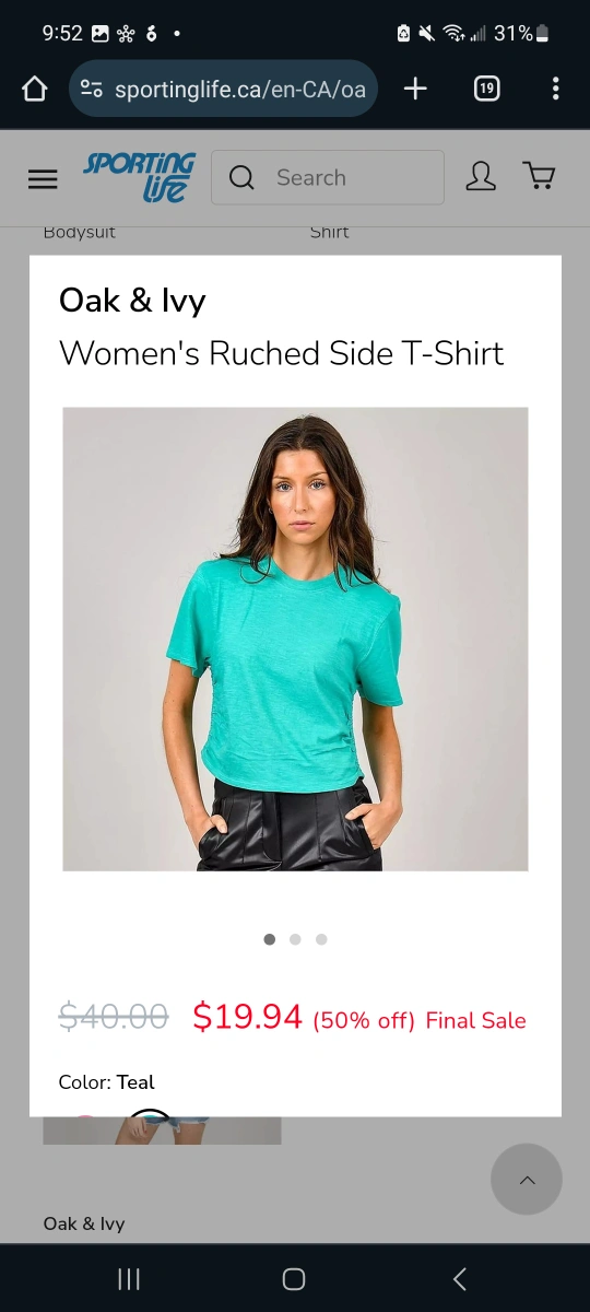 Brand New with tags on. Two Oak & Ivy Ruched Side T-Shirts - one pink and one teal. Bought them for my wife but they are cropped and she wants full length. Final sale at sporting life for $20 each. I am looking for $6 each! https://www.sportinglife.ca/en-CA/oak-ivy?cgid=root&prefn2=gender&prefv2=Women%27s&prefn1=productType&prefv1=T-Shirts%7CTops