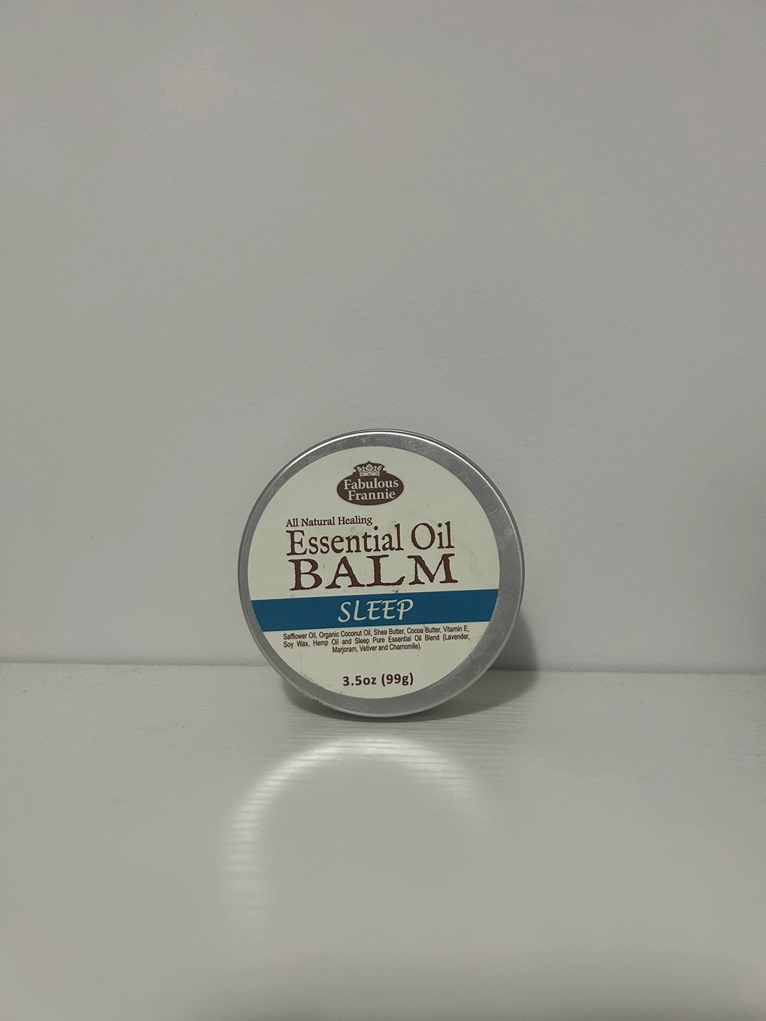 Sleeping balm by Fabulous Frannie. Used just a few times with my own applicator, otherwise like new. “A soothing blend of Lavender, Marjoram, Vetiver and Chamomile essential oils and other ingredients to ease your mind and body into a deep and restful slumber. Wake up well-rested and rejuvenated. Melts with your body heat, so a little goes a long way. Suitable for all skin types. Made with 100% pure essential oil blends and a base of Safflower Oil, Organic Coconut Oil, Shea Butter, Cocoa Butter, Vitamin E, Soy Wax, and Hemp Oil, our rich and soothing Balms are hypoallergenic and suitable for all skin types.”