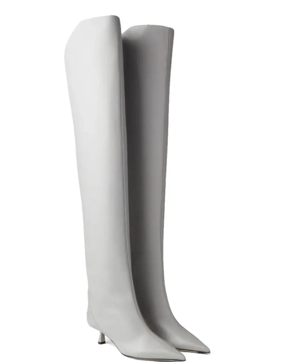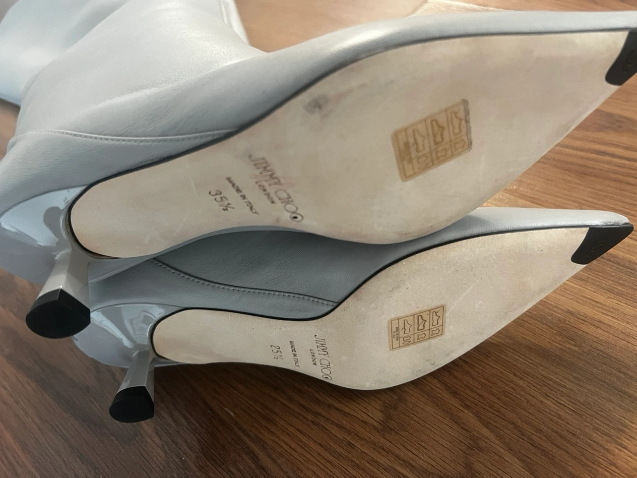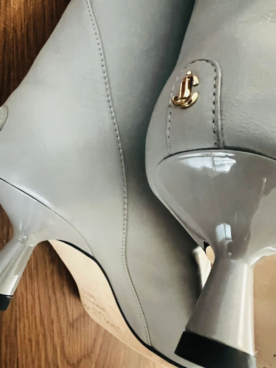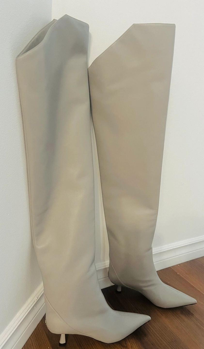 Brand new, never worn. Authentic These over the knee boots are from the Run Way (designer) line so very chic and luxurious with soft lambskin leather. Purchased on Farfetch. **Monthly payments options available, if required** I will delivery to you within the GTA, complimentary Tags: Authentic, designer boots, grey leather, maximalist, luxury, lambskin leather, Jimmy CHOO
