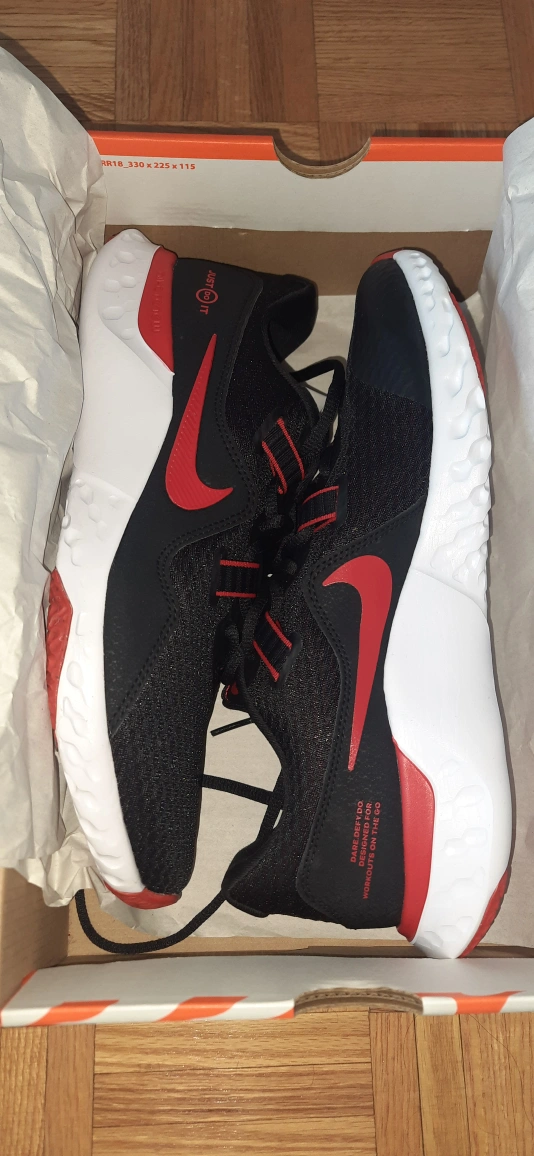 Black and red running shoes. Never used. Comes with original Box and bag.