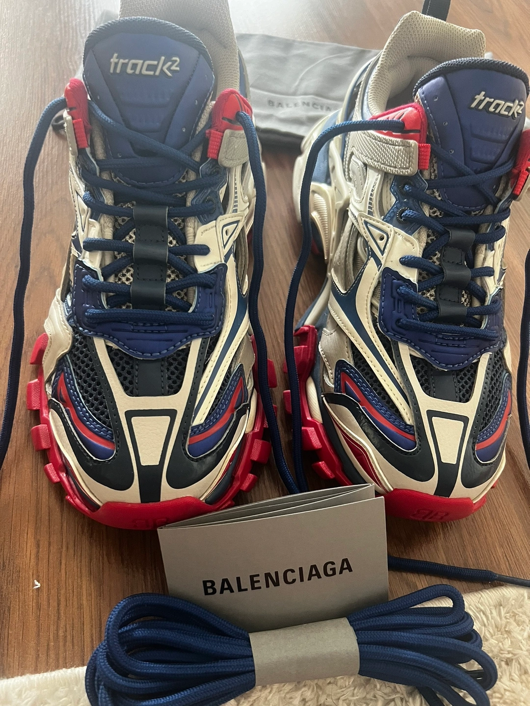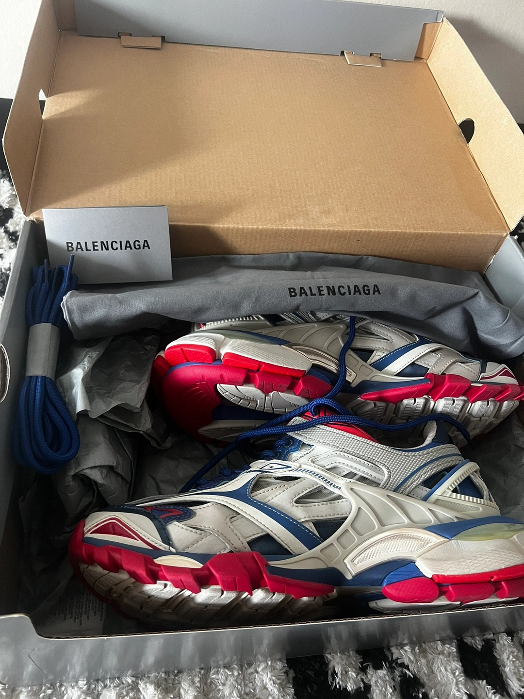 Brand new. Still in original box. Never worn. Authentic Purchased from Balenciaga for over$1000 Unisex - female shoe size 7.5 -8.5 Comes with additional laces, authentication card, shoe bag and stuffing. Tags: authentic trainers, unisex designer sneakers, chunky sneakers, dad sneakers, Versace sneakers Yorkdale mall pick up