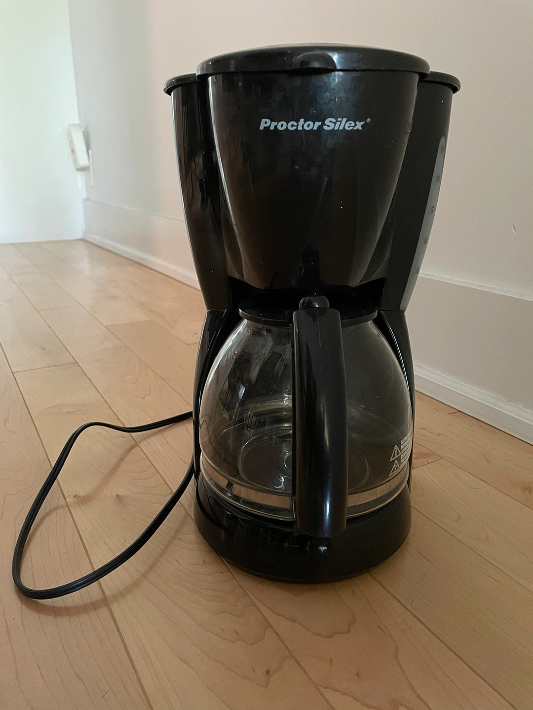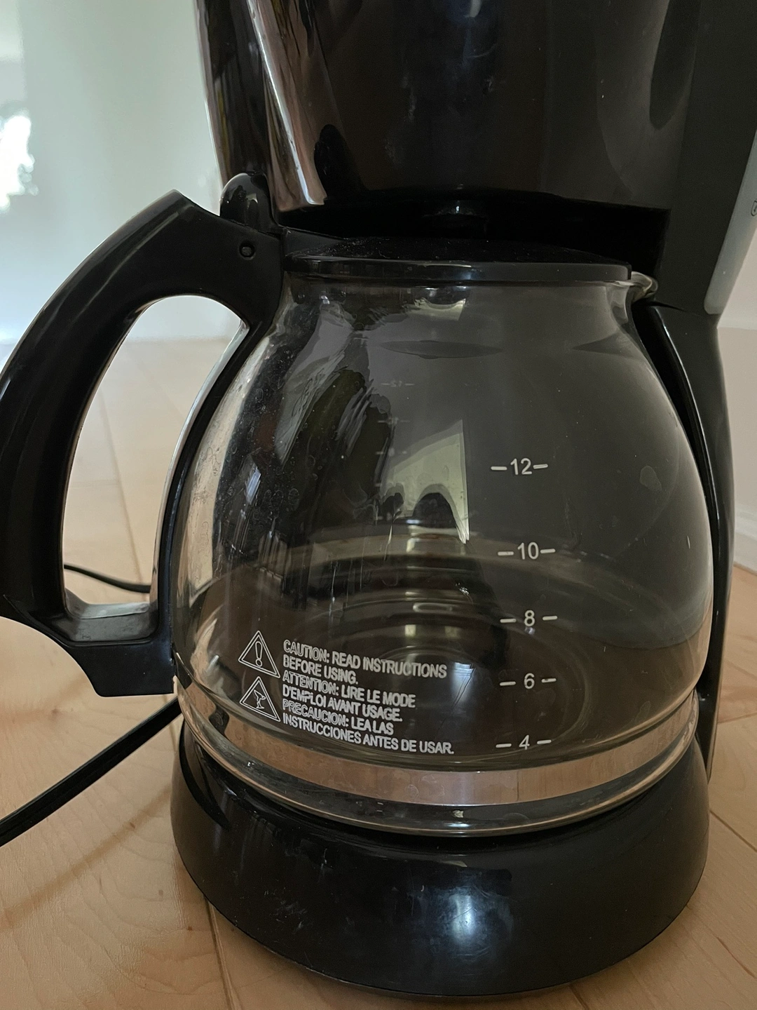 Black coffee maker with a glass carafe. Holds 12 cups. Very good used condition Cash only please and pick up at keele subway station