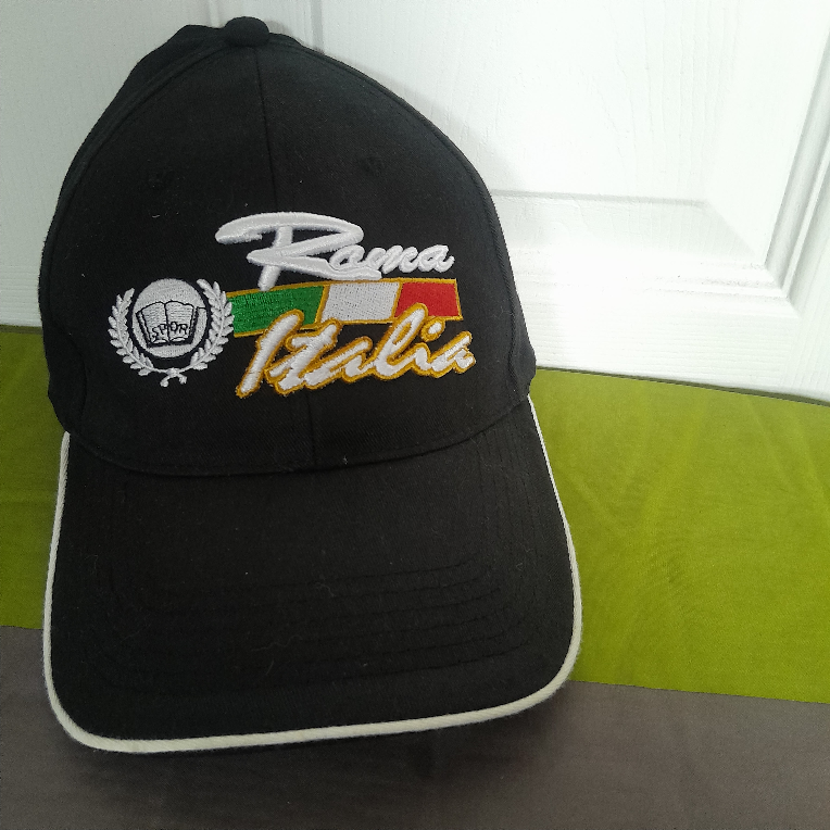 Blackcap with white trim. The front of the cap features an embroidered "Roma Italia" logo.