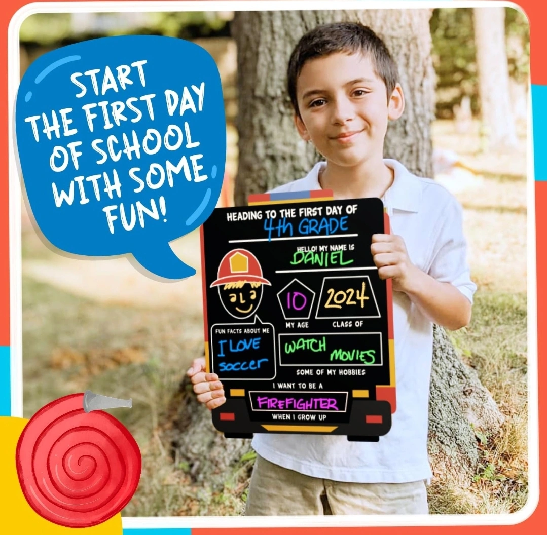 BNIB Brand New In Box Several Available First day / last day of school wooden chalkboard sign Double sided 11x13 inch x 5mm thick Includes microfiber cloth and 5 fine tip chalkboard markers that also work on all other non-porous surfaces (like car windows, glass, plastic, sign) Just use a damp cloth to clean the surface Works with regular chalk as well ***Please Check Out My Other Ads