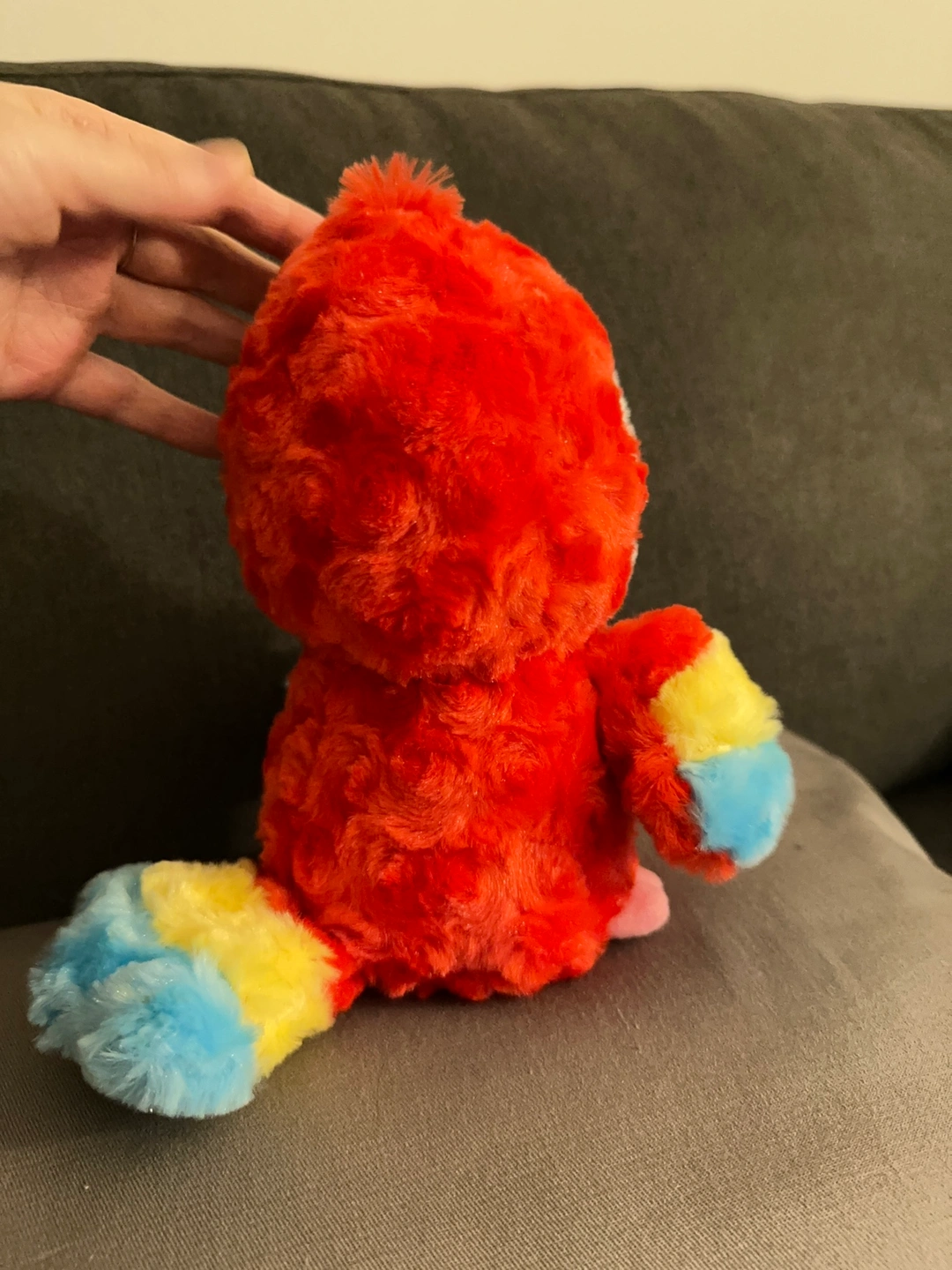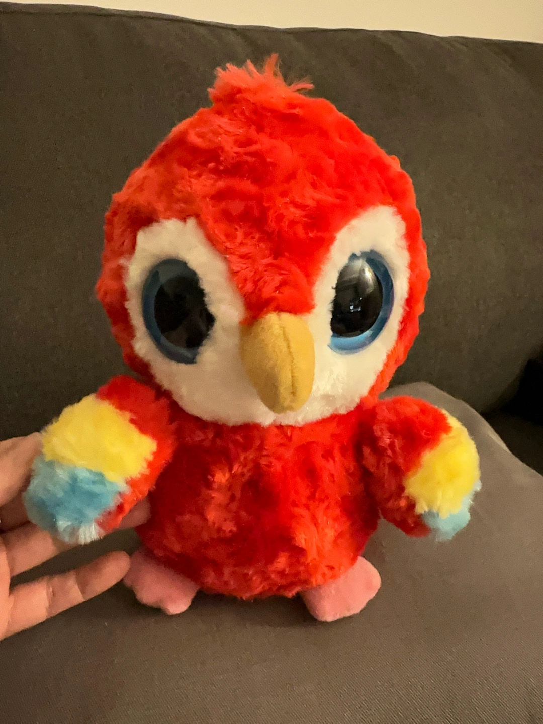 Plush red parrot with large blue eyes. The parrot is approximately 8 inches tall. It is in good condition. Pick up around College Park. Cash only, thanks🥂💖